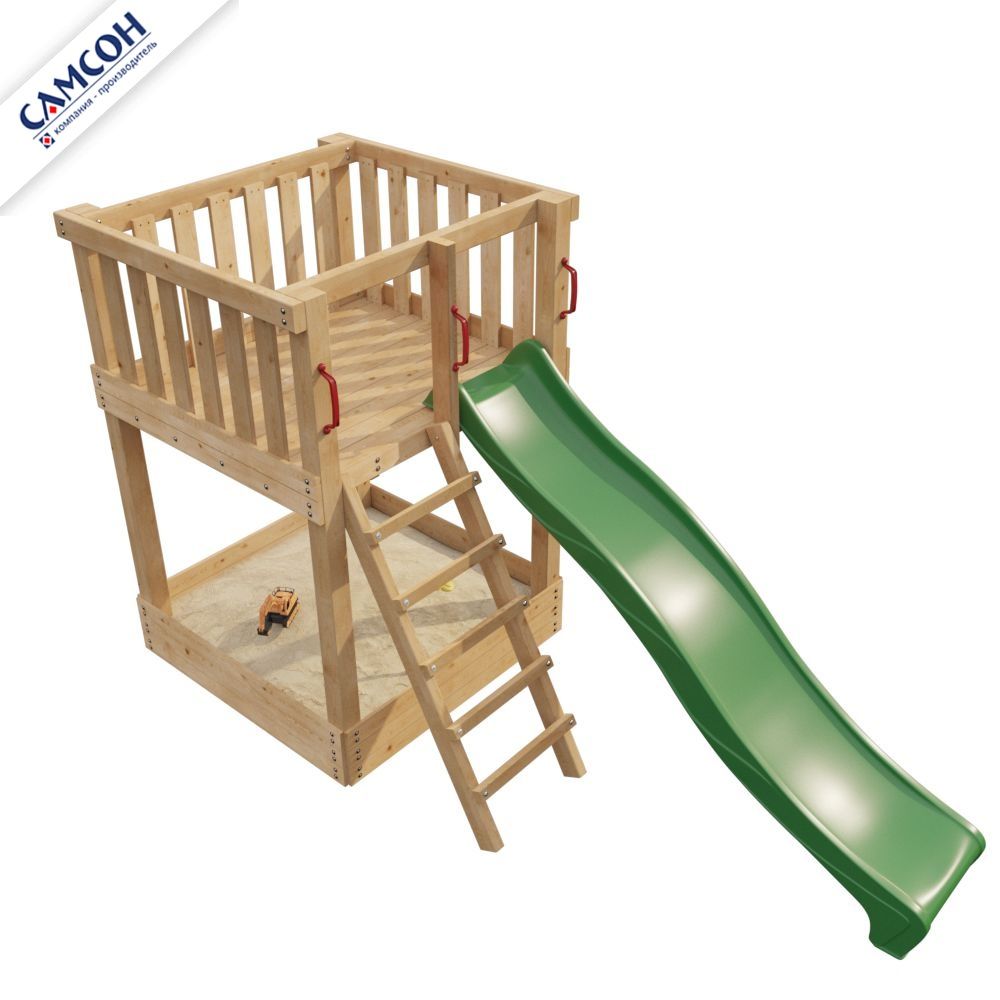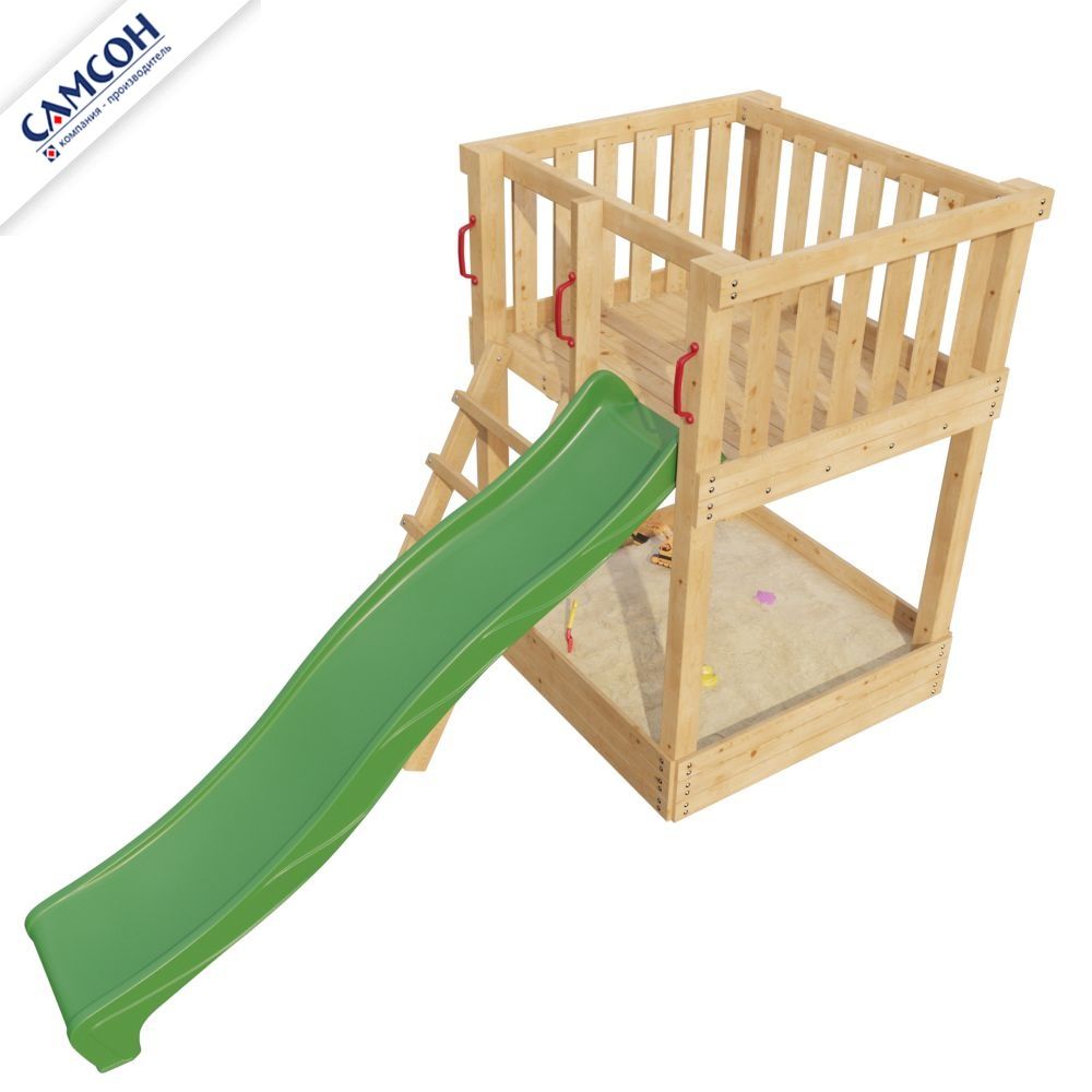 - яркая пластиковая горка (4 цвета: зеленый, красный, желтый, синий. Цвет горки комплектуется из имеющихся на складе. Производство Бельгия).