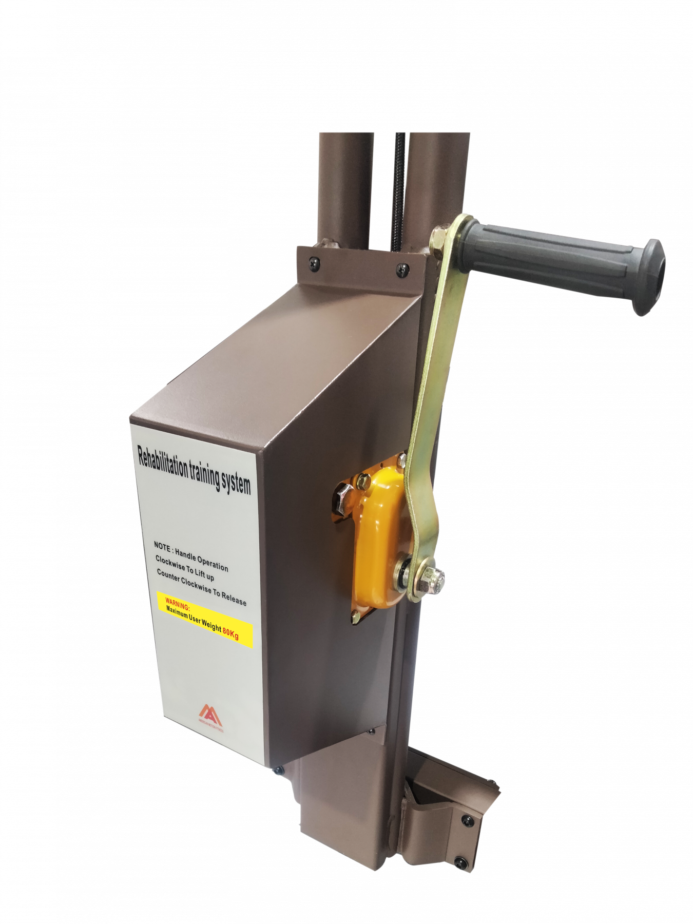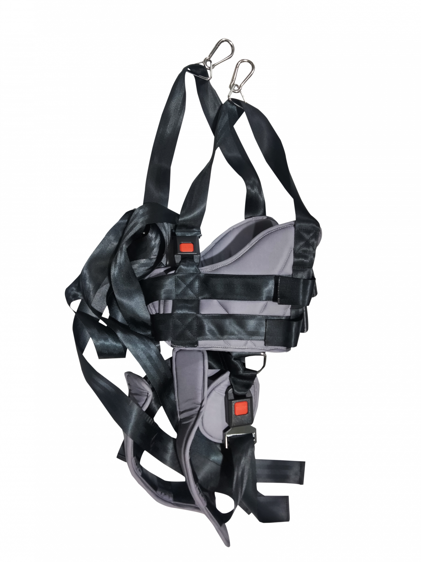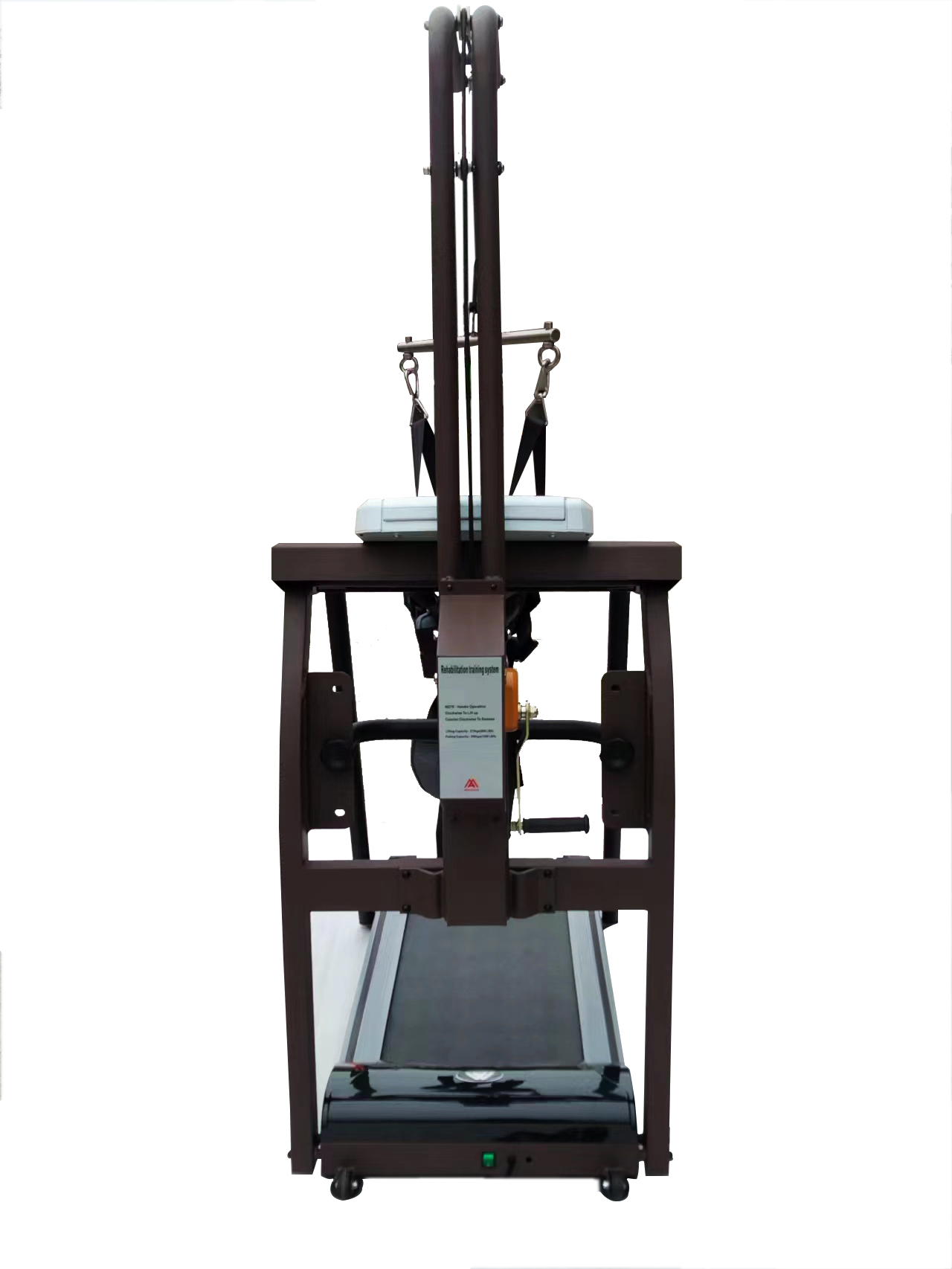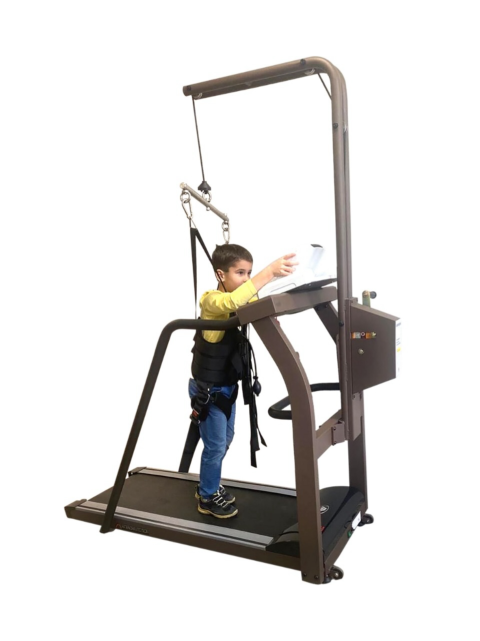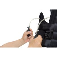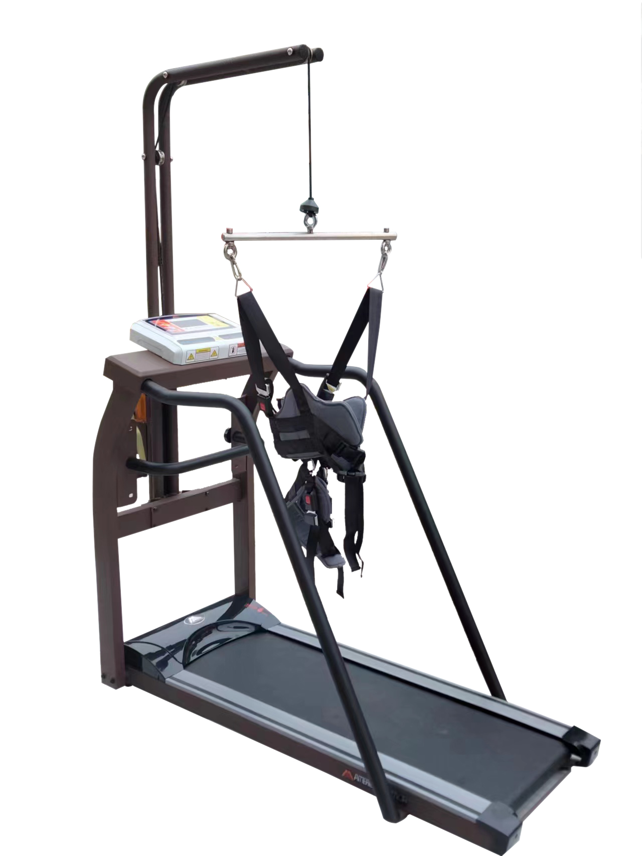 Встроенная система подвеса рассчитана только для людей весом до 80 кг. Подвесная система регулируется вручную вращением рукоятки. Диапазон высоты крепления подвесного жилета 100-170 см от бегового полотна.