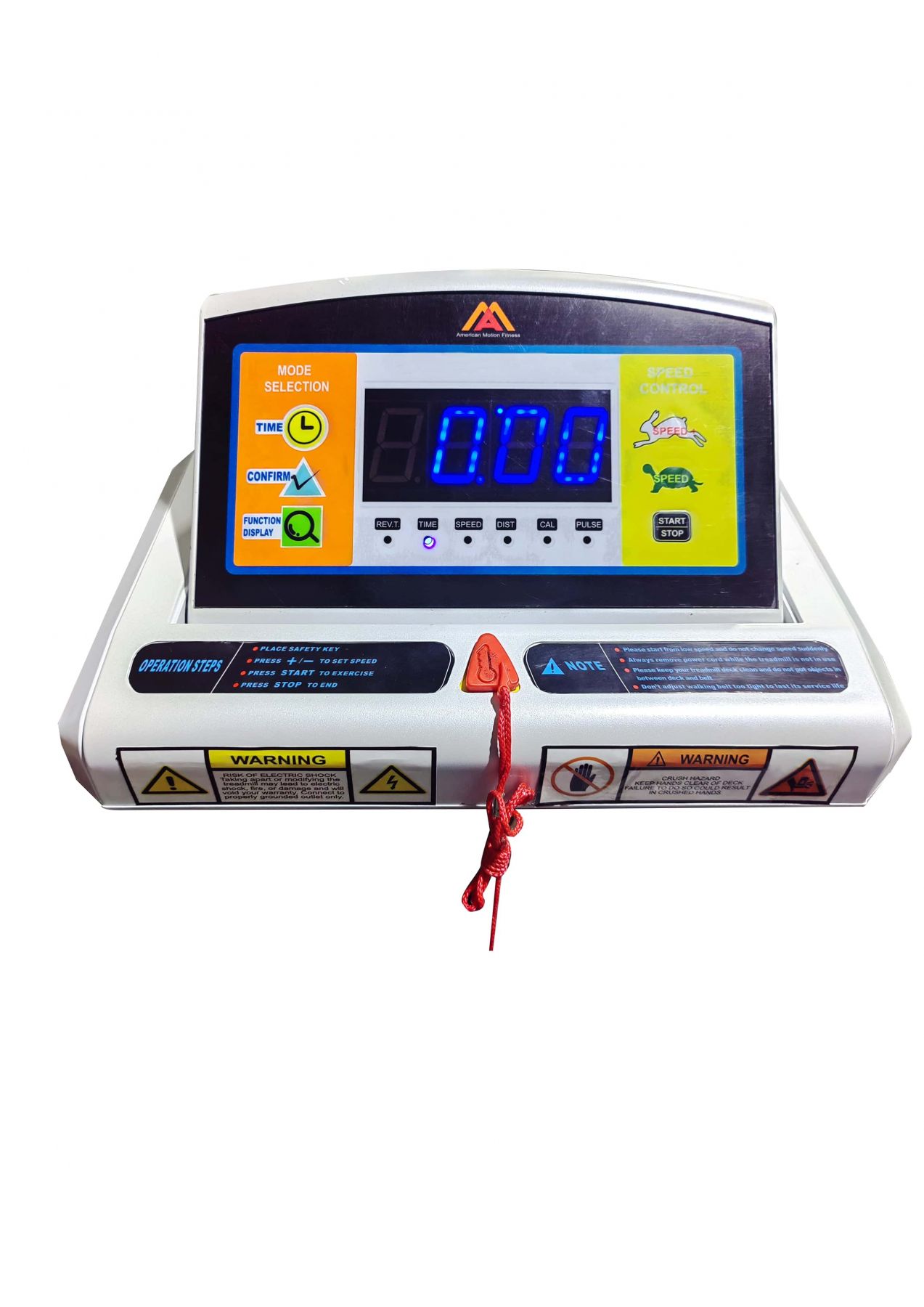 При необходимости срочно остановить тренировку, выньте ключ безопасности из ячейки и тренажер плавно остановится.