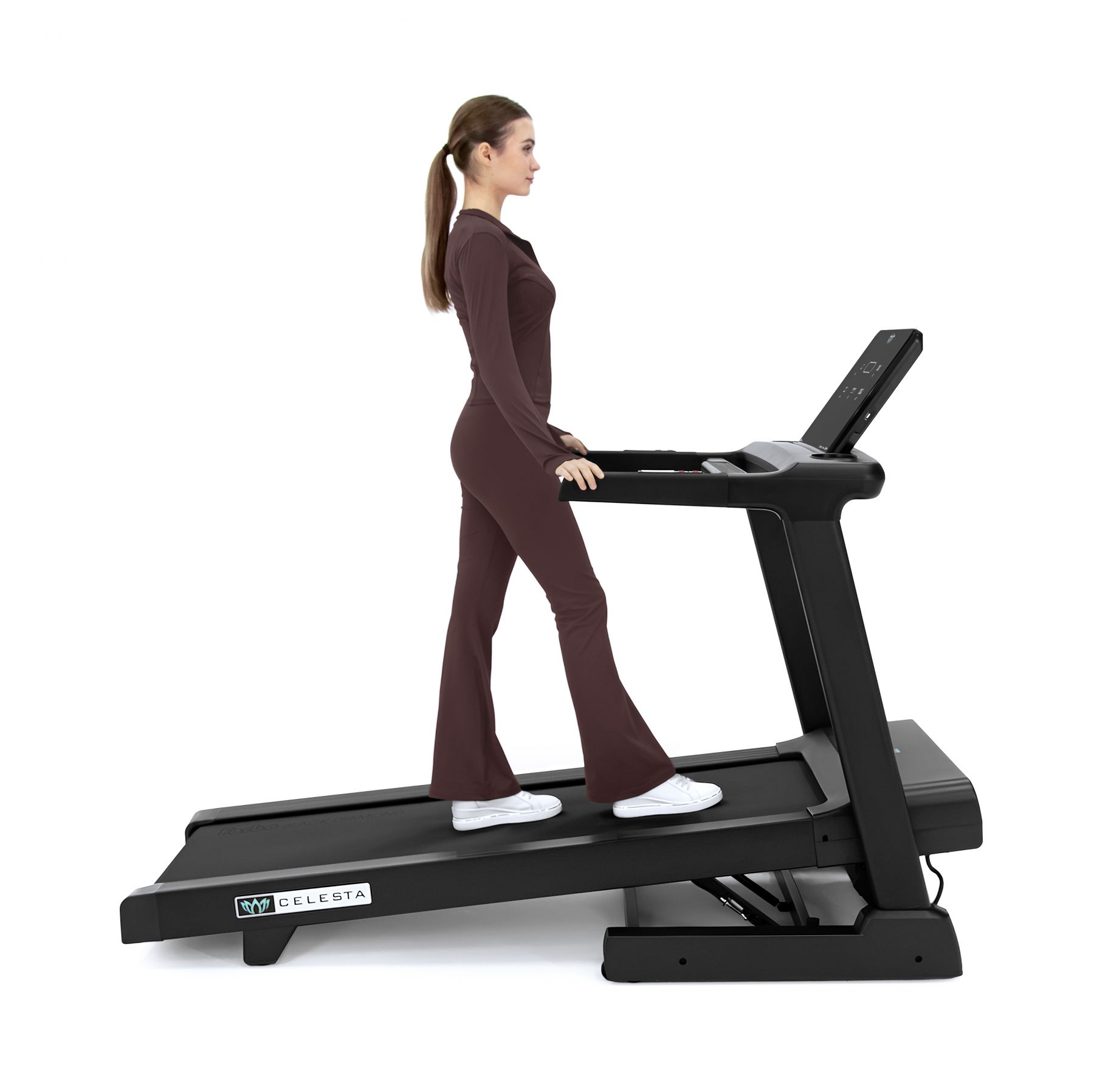Электрическая беговая дорожка Aura Labs™ Celesta от шведской Dynamatica LLC, соединившая в себе великолепные технические характеристики, уникальную ортопедическую составляющую и богатый набор опций, относится к премиальной линейке оборудования. Мощный стальной профиль 2 мм, один из лучших двигателей от лидера японского двигателестроения Nidec-Seimitsu™ выводит беговую дорожку в лидеры по грузоподъёмности в классе домашних беговых дорожек с максимальным весом пользователя 180 кг. Aura Labs™ Celesta обладает самой мягкой амортизацией среди всех беговых дорожек с минимальным уровнем ударной нагрузки на суставы ног и позвоночник. Основная сфера ее применения ориентирована на реабилитационные задачи, пользователей с суставными болями, артритом, восстанавливающихся после травм и всех тех, кто хочет сохранить суставы в рабочем состоянии как можно дольше. Помимо выдающихся характеристик, дорожка стильно выглядит – классические формы североевропейской школы дизайна воплощены в жизнь одной из лучших шведских студий индустриального дизайна. Цветовая гамма с использованием матового черного и фирменного бирюзового цвета Aura Labs™ Pure Turquoise отлично ложится на аккуратные, строгие, слегка закругленные линии серии Eco Kinetics от LundbergDesign Studio.