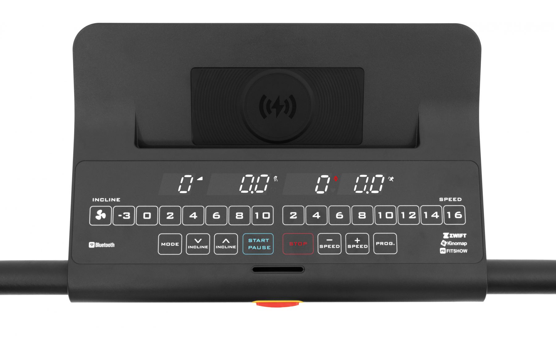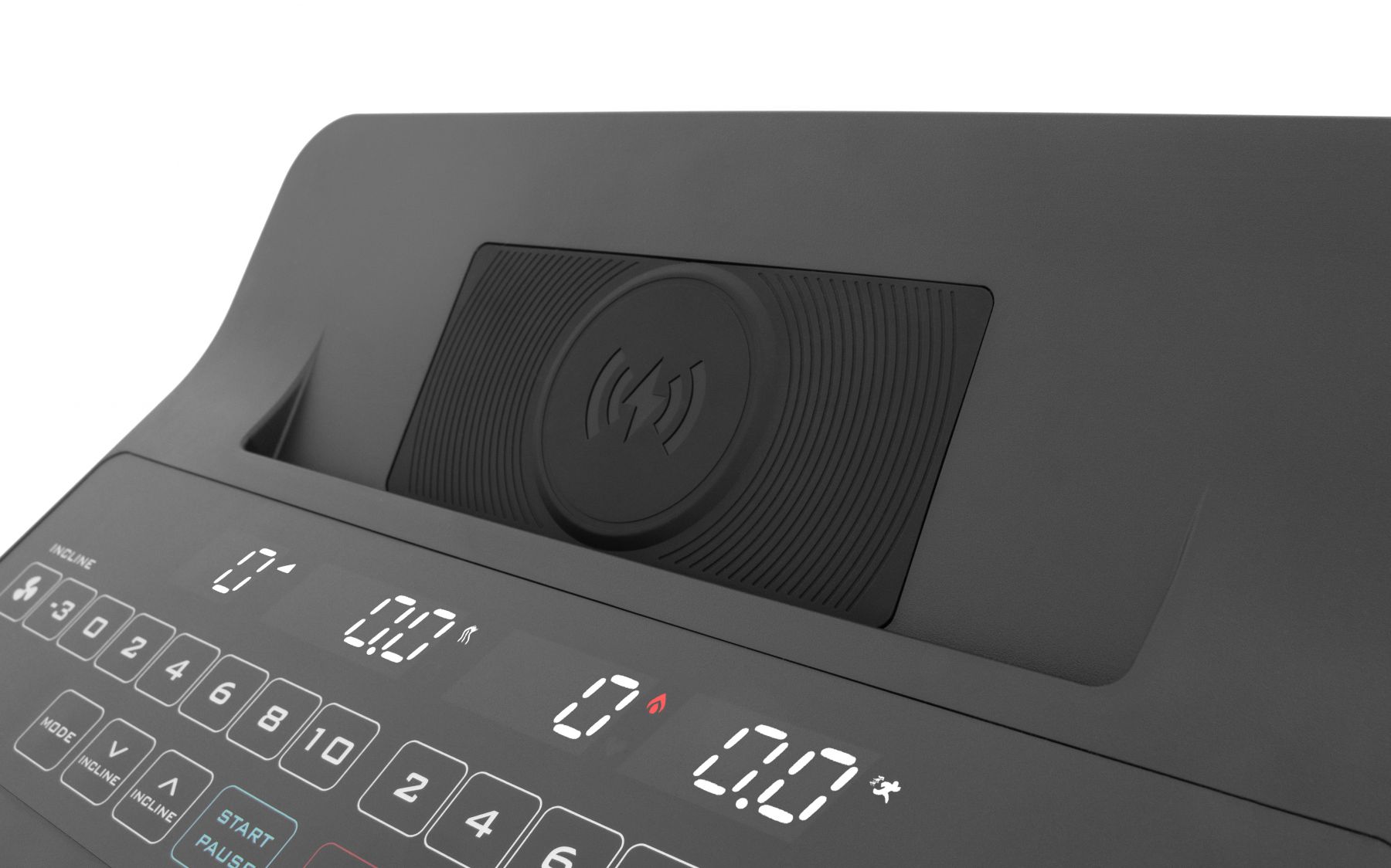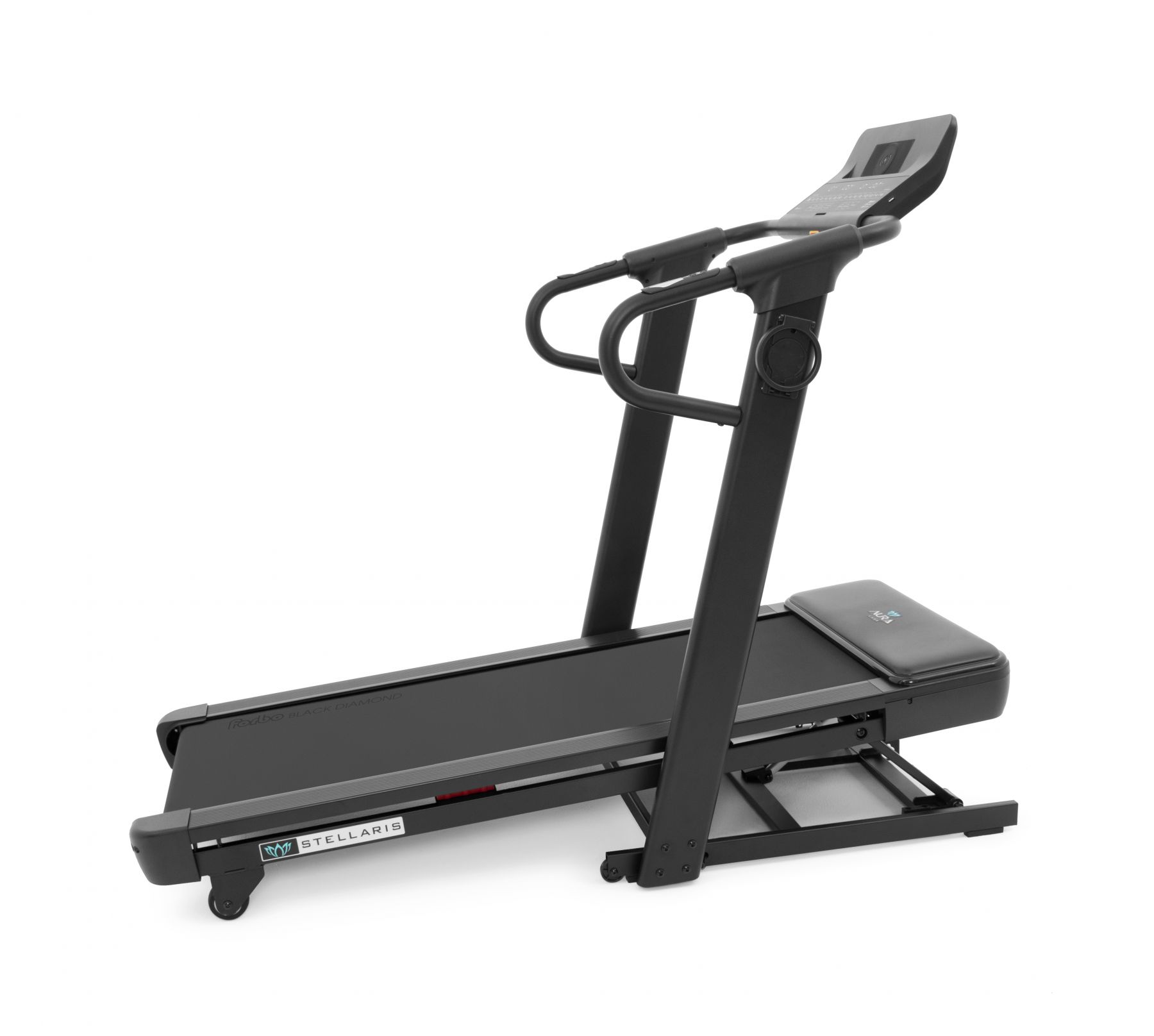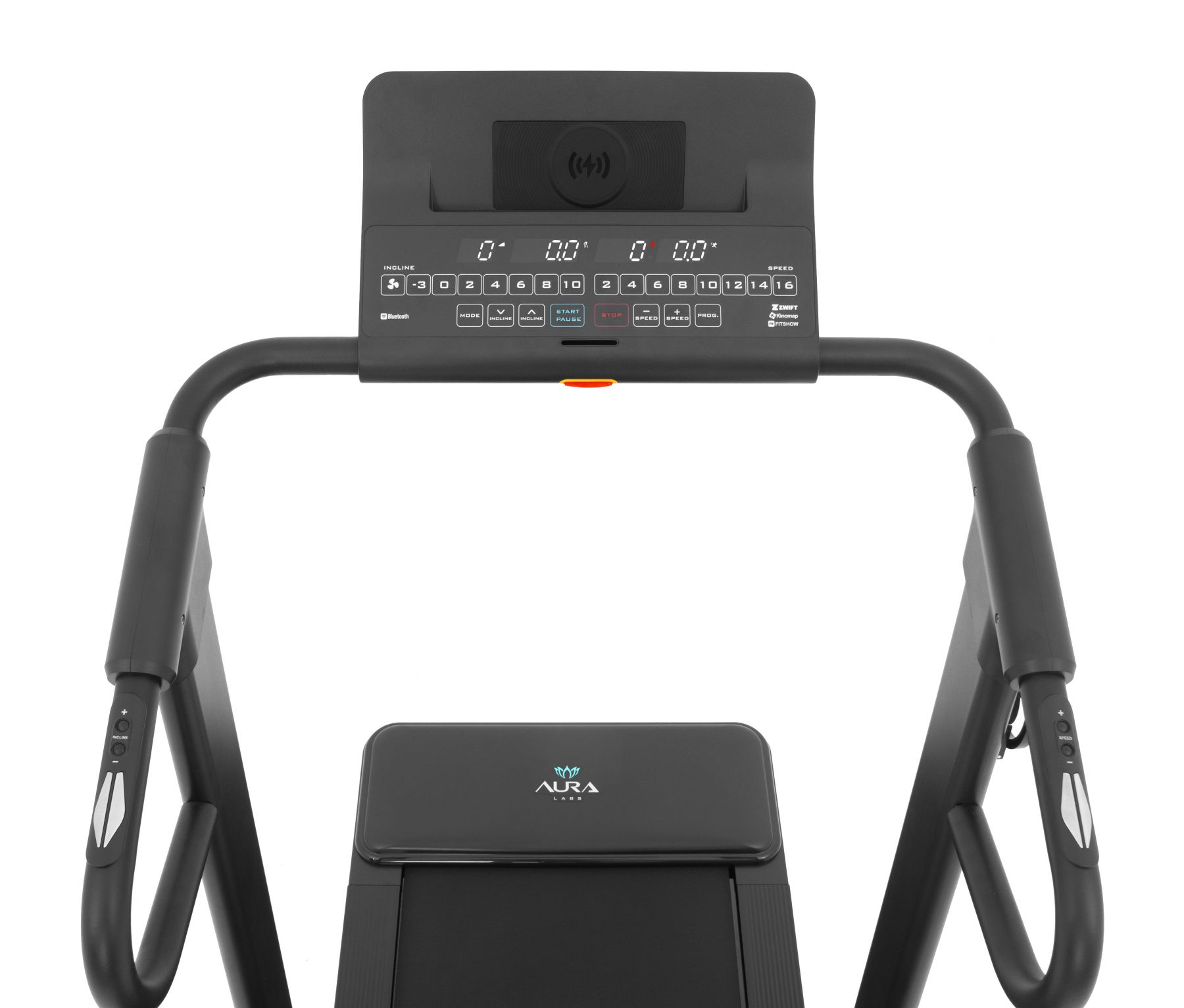 Aura Labs™ Stellaris от шведской Dynamatica – уникальный тренажер в том смысле, что тут есть все, что только можно собрать в одной беговой дорожке. Помимо мощного мотора и большой беговой зоны, здесь есть отрицательный угол наклона, система автоматического складывания, проводная и беспроводная зарядка телефона, Bluetooth™ передатчик пульса, подключаемые "по воздуху" приложения и музыка. Здесь есть даже двухфазный вентилятор.