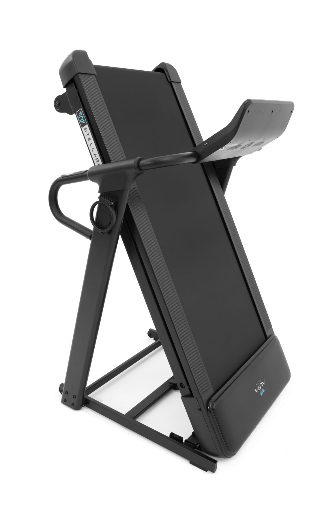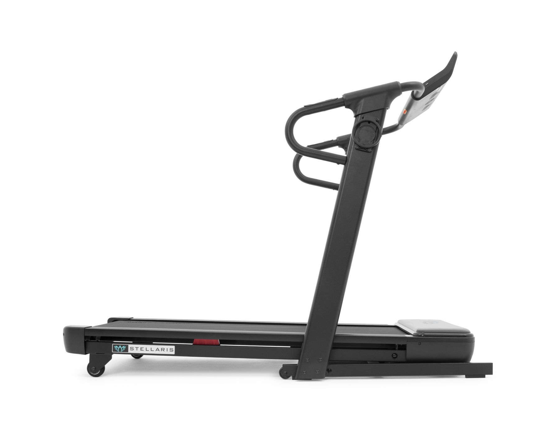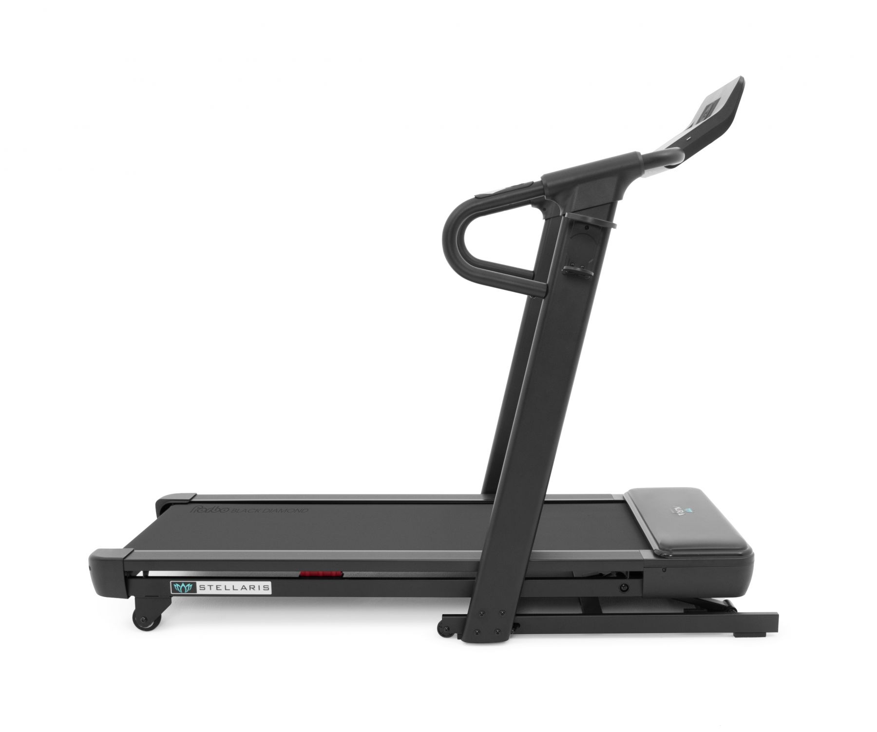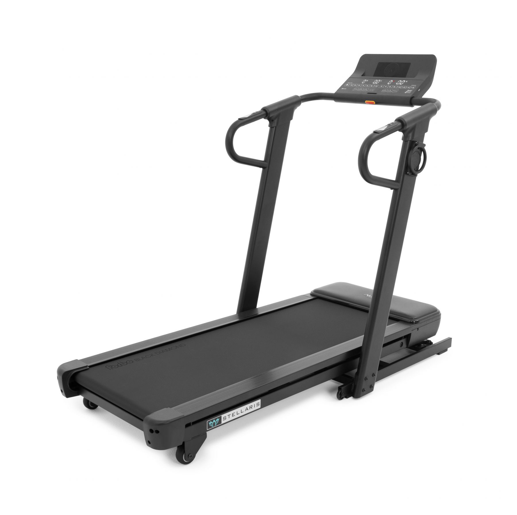 Aura Labs™ Stellaris от шведской Dynamatica – уникальный тренажер в том смысле, что тут есть все, что только можно собрать в одной беговой дорожке. Помимо мощного мотора и большой беговой зоны, здесь есть отрицательный угол наклона, система автоматического складывания, проводная и беспроводная зарядка телефона, Bluetooth™ передатчик пульса, подключаемые "по воздуху" приложения и музыка. Здесь есть даже двухфазный вентилятор.