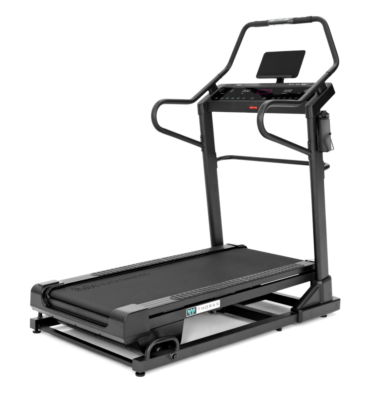 Шведская компания Dynamatica™ представляет новейший и один из самых эффективных на сегодняшний день фитнес продуктов – премиальную электрическую беговую дорожку Aura Labs™ Thorax. Принципиальное отличие этого тренажера от подавляющего большинства других дорожек состоит в просто невероятном угле положительного наклона, на максимуме это 25 градусов и 40 уровней подъема. Кроме того, есть здесь и 3 уровня отрицательного угла наклона с максимальным значением -1,8 градуса. Уникальное сочетание в одном тренажере сверхвысоких и отрицательных углов наклона обеспечивает взрывной рост эффективности тренировочного процесса. Aura Labs™ Thorax – это по-настоящему эффективный и универсальный тренажер, который закрывает самый широкий спектр потребности пользователей и подойдет всем, от начинающих пользователей до профессиональных атлетов. Беговая дорожка делает отдельный акцент на реабилитационных задачах и пользователях с проблемными суставами за счет перераспределения нагрузки в сторону максимизации кардио-нагрузки на каждую единицу движения.