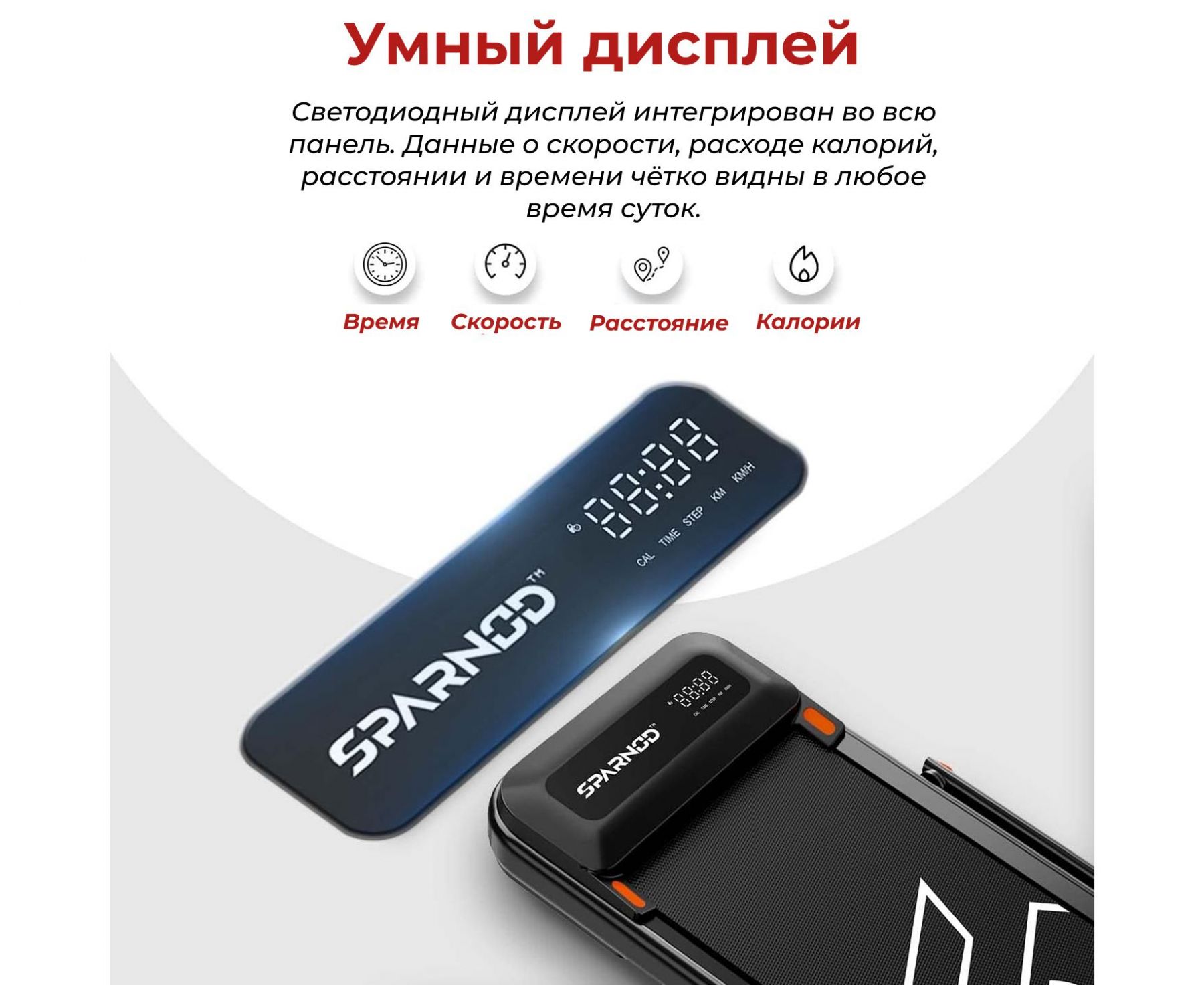 На встроенном LCD-дисплее отображаются все важные параметры тренировки: скорость, время, пройденная дистанция и количество сожжённых калорий. Это поможет вам следить за своими результатами и корректировать нагрузку по мере необходимости.