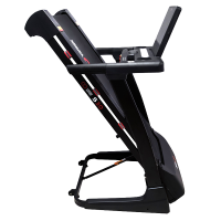 Благодаря гидравлической системе складывания дорожка легко и безопасно переводится в вертикальное положение. В сложенном виде она занимает минимум пространства — всего 117 x 76,5 x 147,5 см, что делает её удобной для использования в домашних условиях.