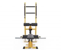 Конструкция выдерживает вес до 300 кг, а максимальная нагрузка на штангу до 200 кг. Каркас выполнен из прочной стали с профилем 70 х 50 х 2 мм, что обеспечивает высокую устойчивость даже при максимальной нагрузке. Размер тренажера в рабочем виде составляет 116,3 х 127,4 х 143,2 см, что делает его устойчивым и удобным для выполнения упражнений.