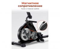 Модель рассчитана на пользователей весом до 120 кг. Удобное сиденье обеспечивает комфорт во время тренировки, позволяя сосредоточиться на выполнении упражнений. Слайд длиной 64,3 см обеспечивает естественную амплитуду движений и комфорт при каждом гребке. Эргономичная конструкция способствует правильному положению тела, снижая нагрузку на спину и суставы. В модели установлен Bluetooth для подключения к приложению с онлайн тренировками FITSHOW.