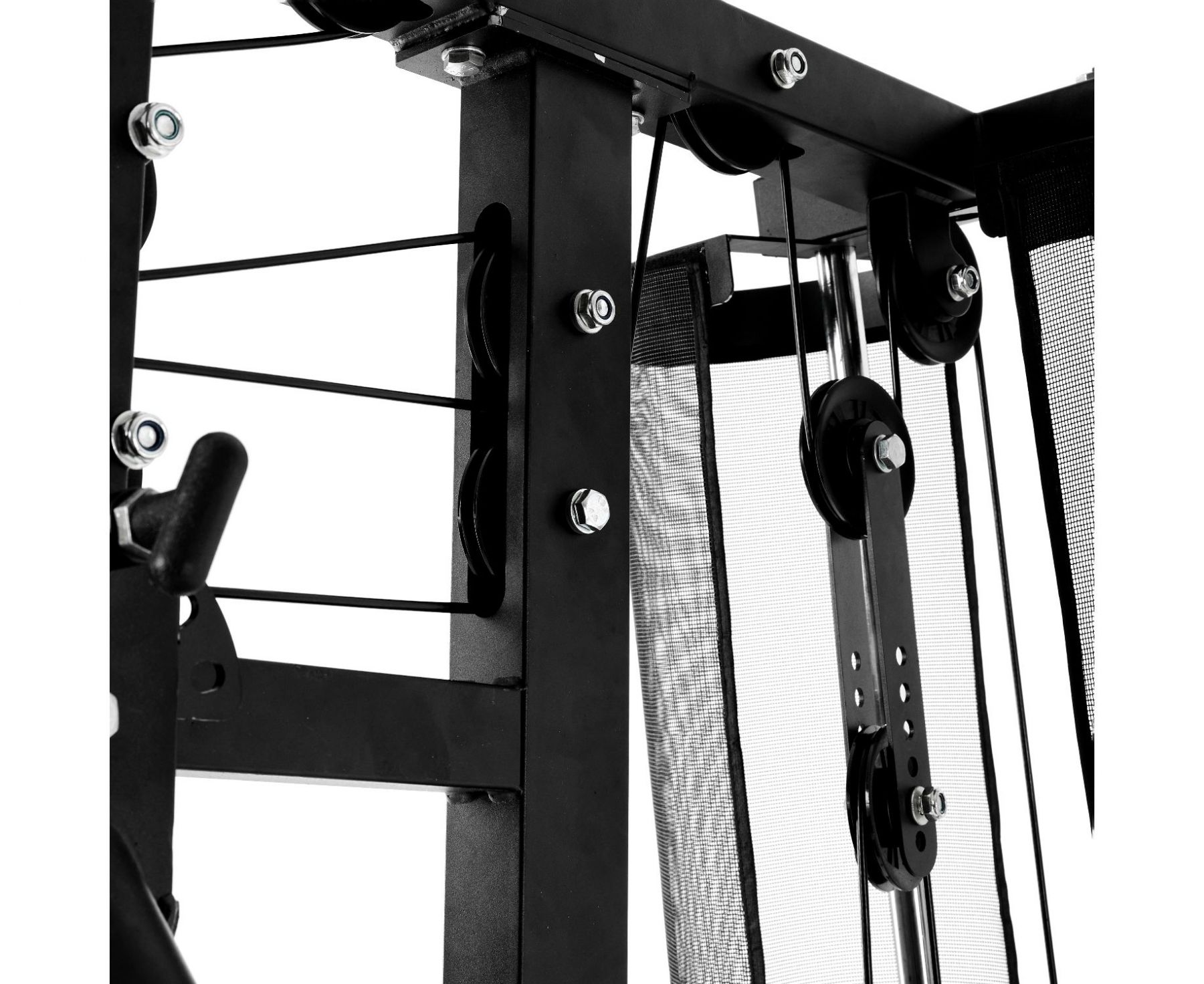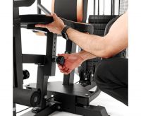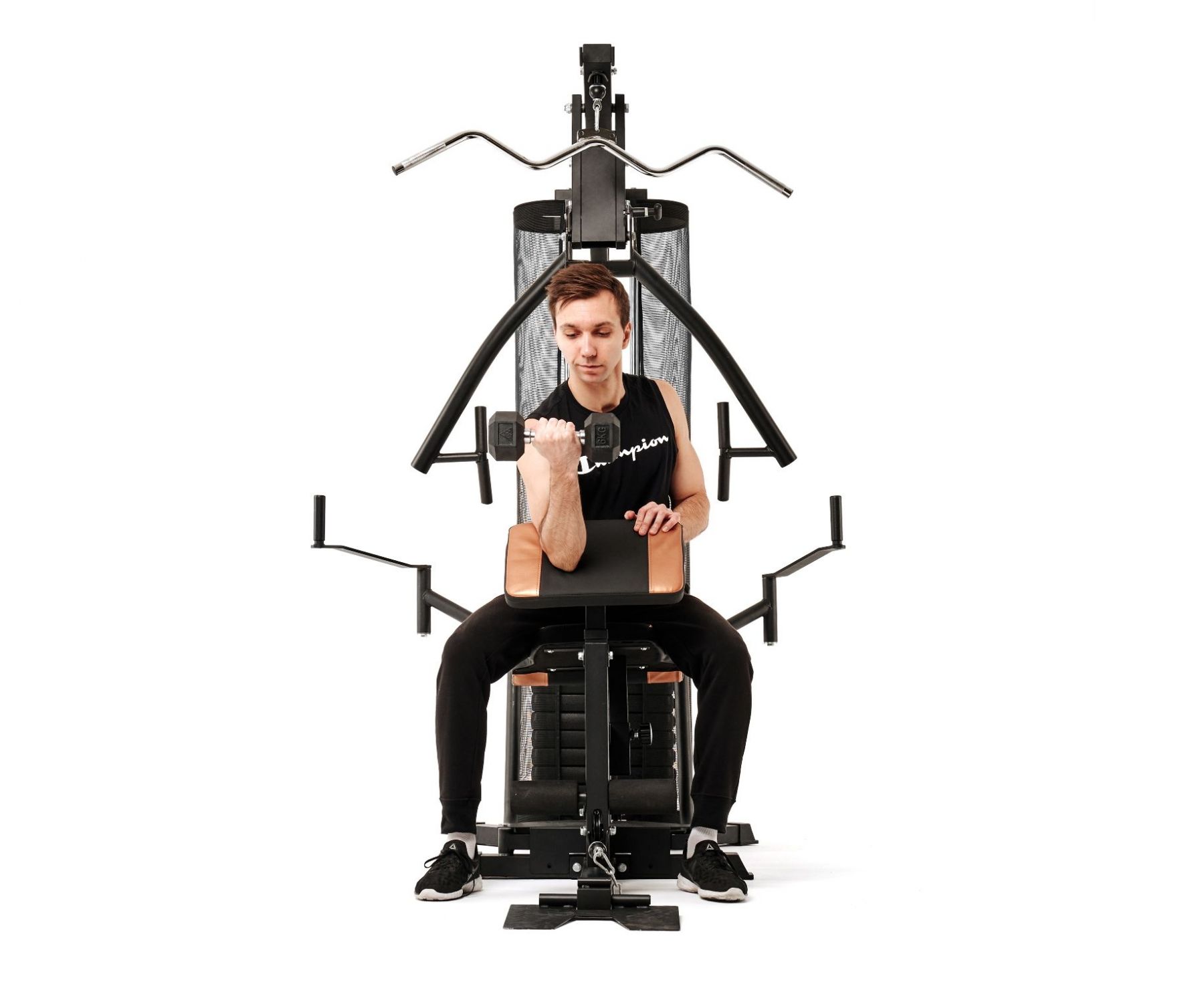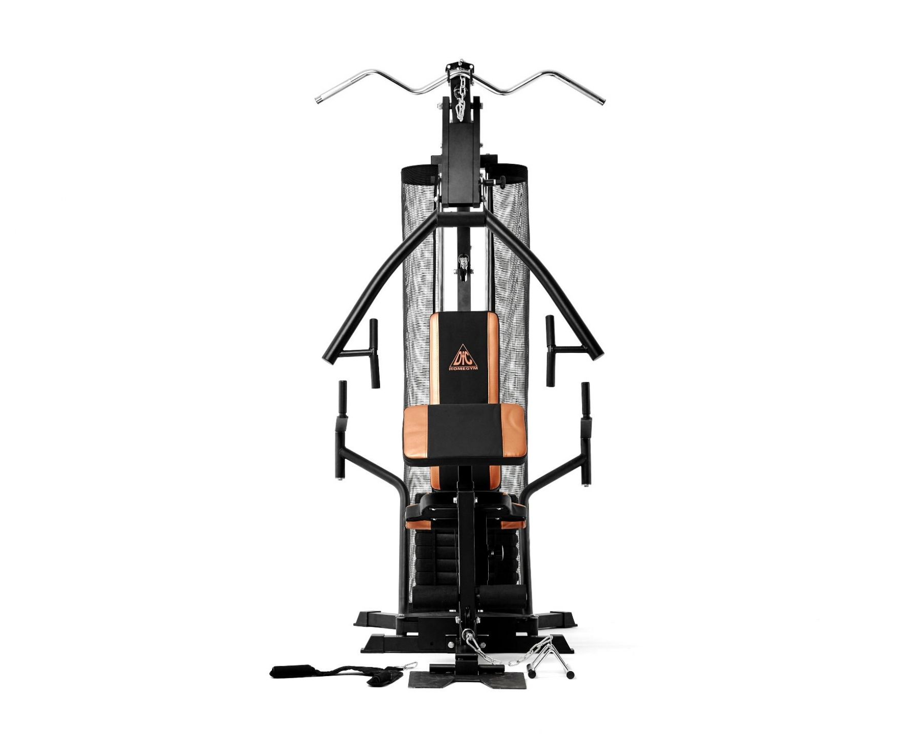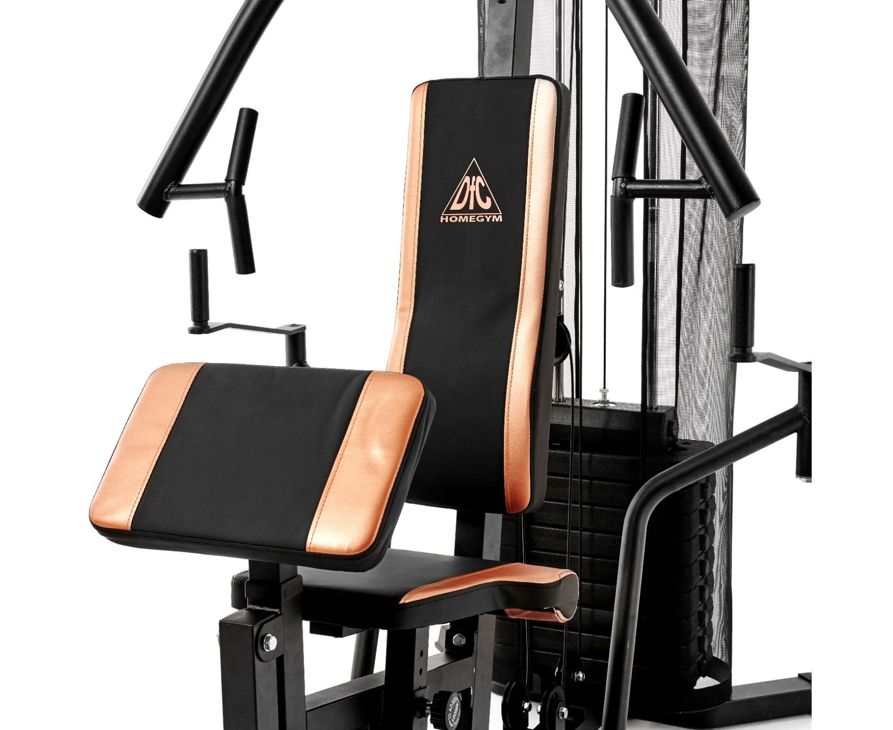 Комплекс DFC D5125-81.5 со стеком 81,5 кг для домашнего использования предназначен для прокачки всех групп мышц: рук и верхнего плечевого пояса, спины, грудных мышц, пресса, ног. Позволяет выполнять силовые упражнения с разным функционалом для наилучшей эффективности тренировки. Сиденье, спинка и парта для бицепса обиты нескользящим полипропиленом чёрного цвета с оранжевыми вставками. Максимальный вес пользователя — 200 килограмм.