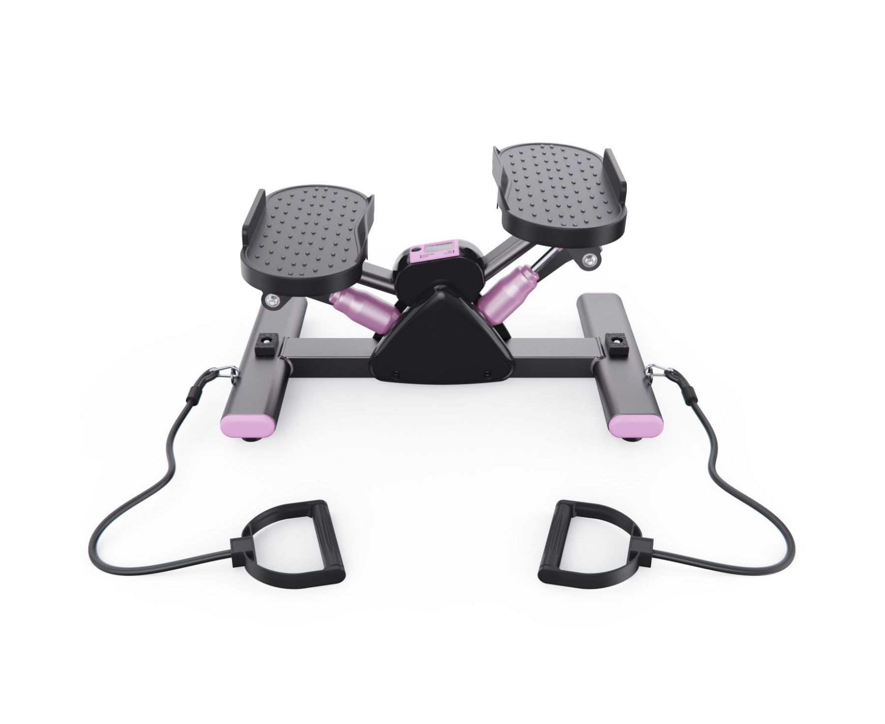 Балансировочный степпер с эспандерами DFC SC-S012E розового цвета — идеальный тренажер для ног, который сочетает в себе функциональность, эффективность и стильный дизайн. Этот компактный степпер тренажер для дома позволит вам тренироваться в комфортных условиях, укрепив сердечно-сосудистую систему и проработав основные группы мышц: бедра, икры и верхнюю часть тела.