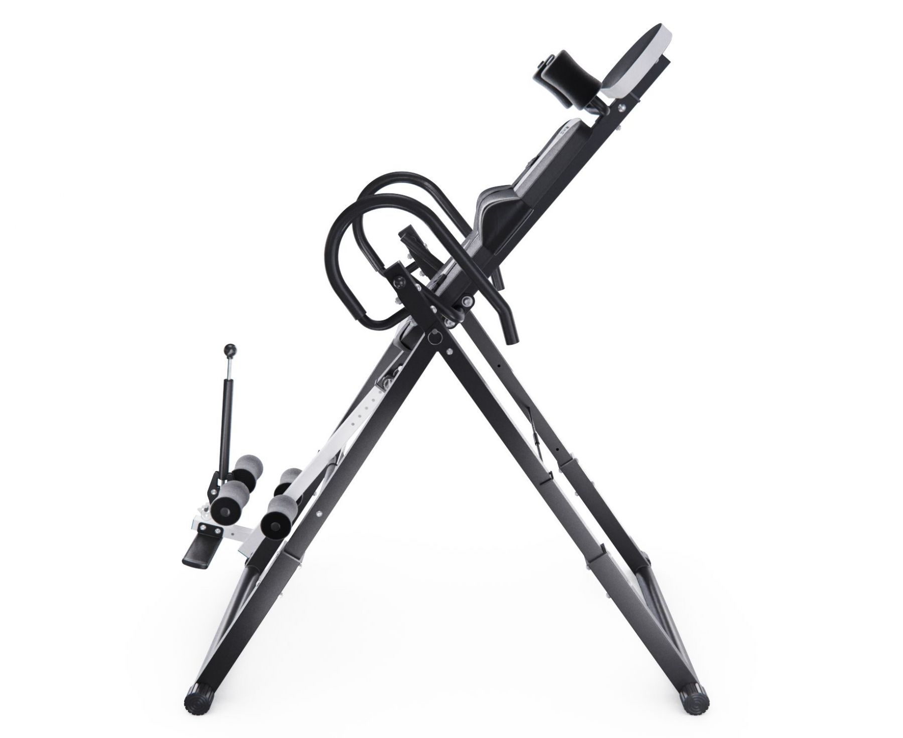 Инверсионный стол DFC IT6312A-B — это удобный и эффективный тренажёр для улучшения осанки, укрепления связок и улучшения кровообращения. Он имеет спинку чёрного цвета с валиками под голову и съёмную подушку под поясницу для дополнительного комфорта. Страховочный ремень входит в комплект, двойные валики для удобства использования.
