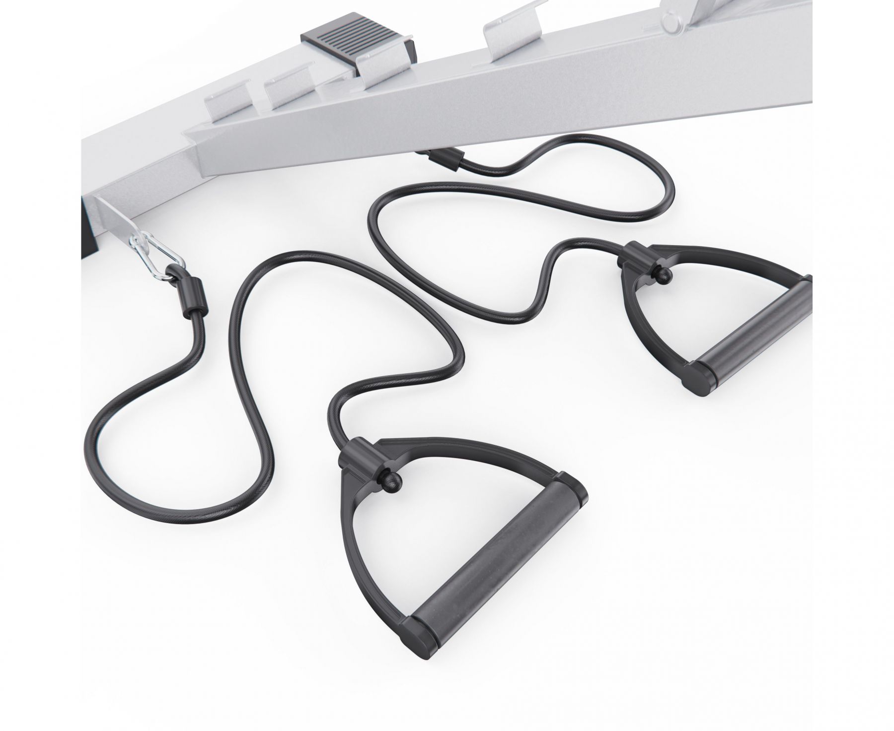 Мягкие валики из вспененного материала обеспечивают комфорт и надежную фиксацию ног, а устойчивая рама гарантирует безопасность даже при интенсивных занятиях. В комплект входят эспандеры, которые позволяют добавить нагрузку на мышцы рук, плеч и груди, делая ваши тренировки более функциональными.