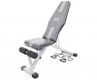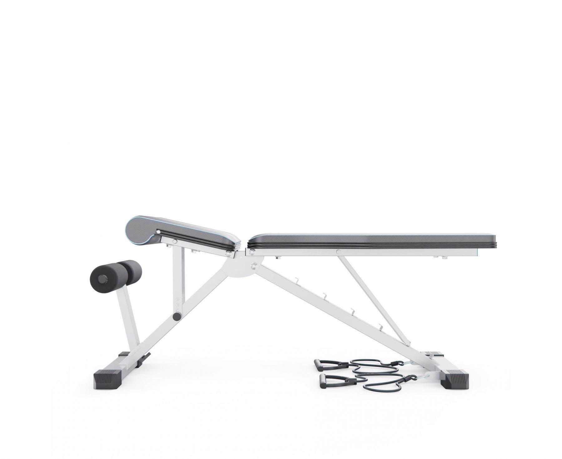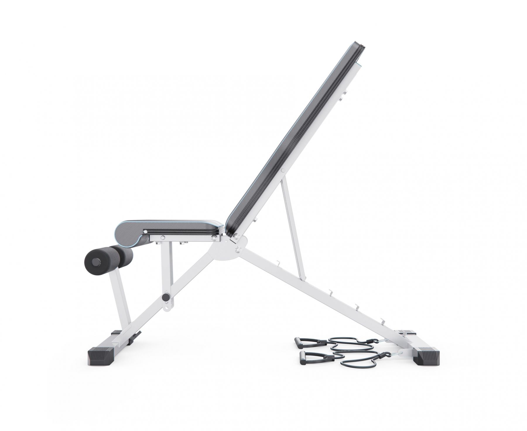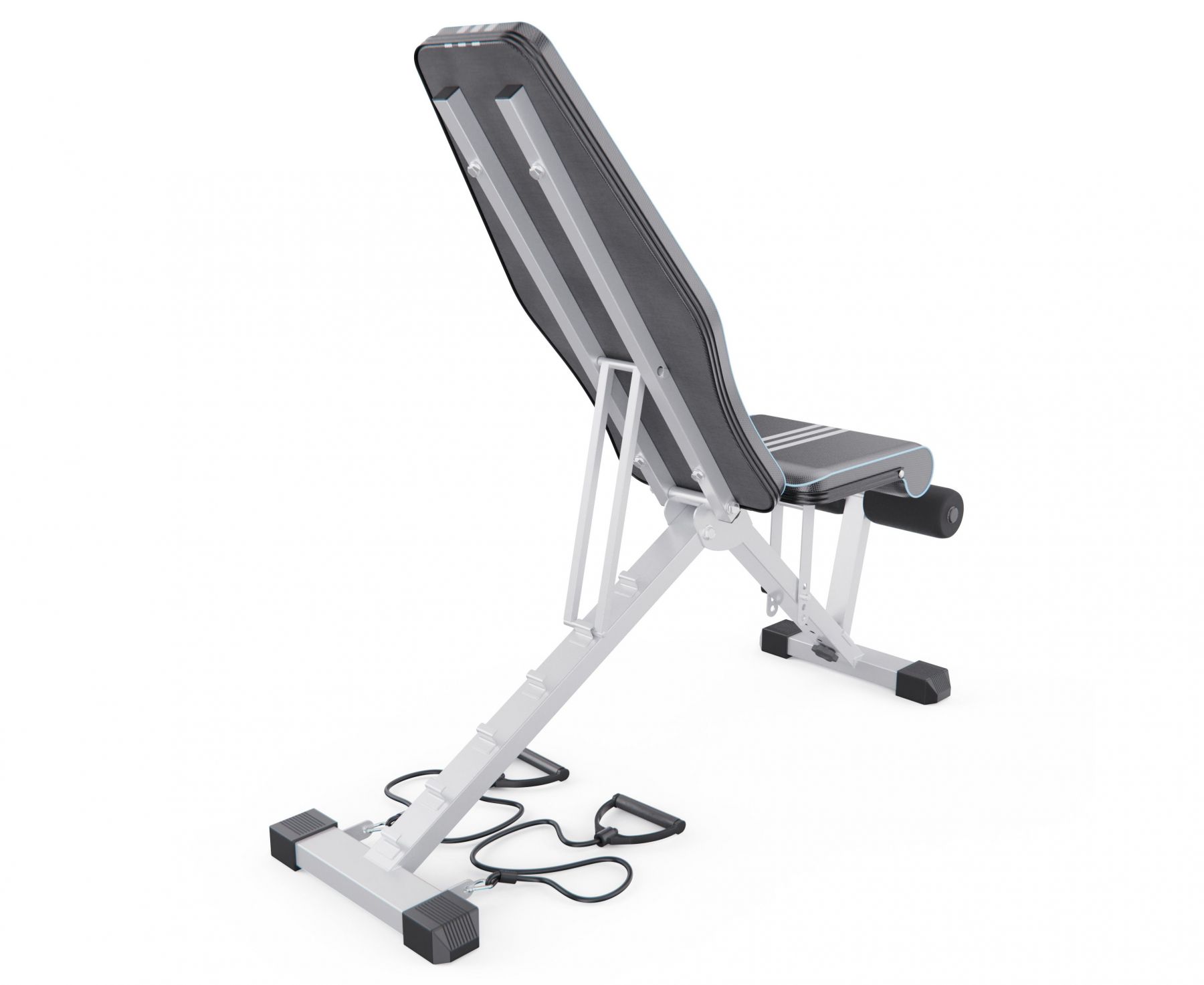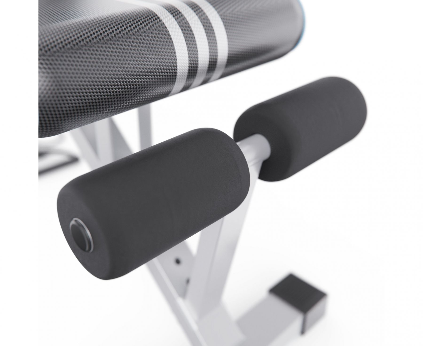 Скамья оснащена 8 уровнями регулировки угла наклона спинки, в том числе с отрицательным углом, что позволяет выполнять как силовые упражнения, так и упражнения для пресса и растяжку. Сиденье регулируется в 4 положениях, а мягкие валики для фиксации ног из вспененного материала имеют 4 уровня регулировки, что делает тренировки удобными для людей разного роста.