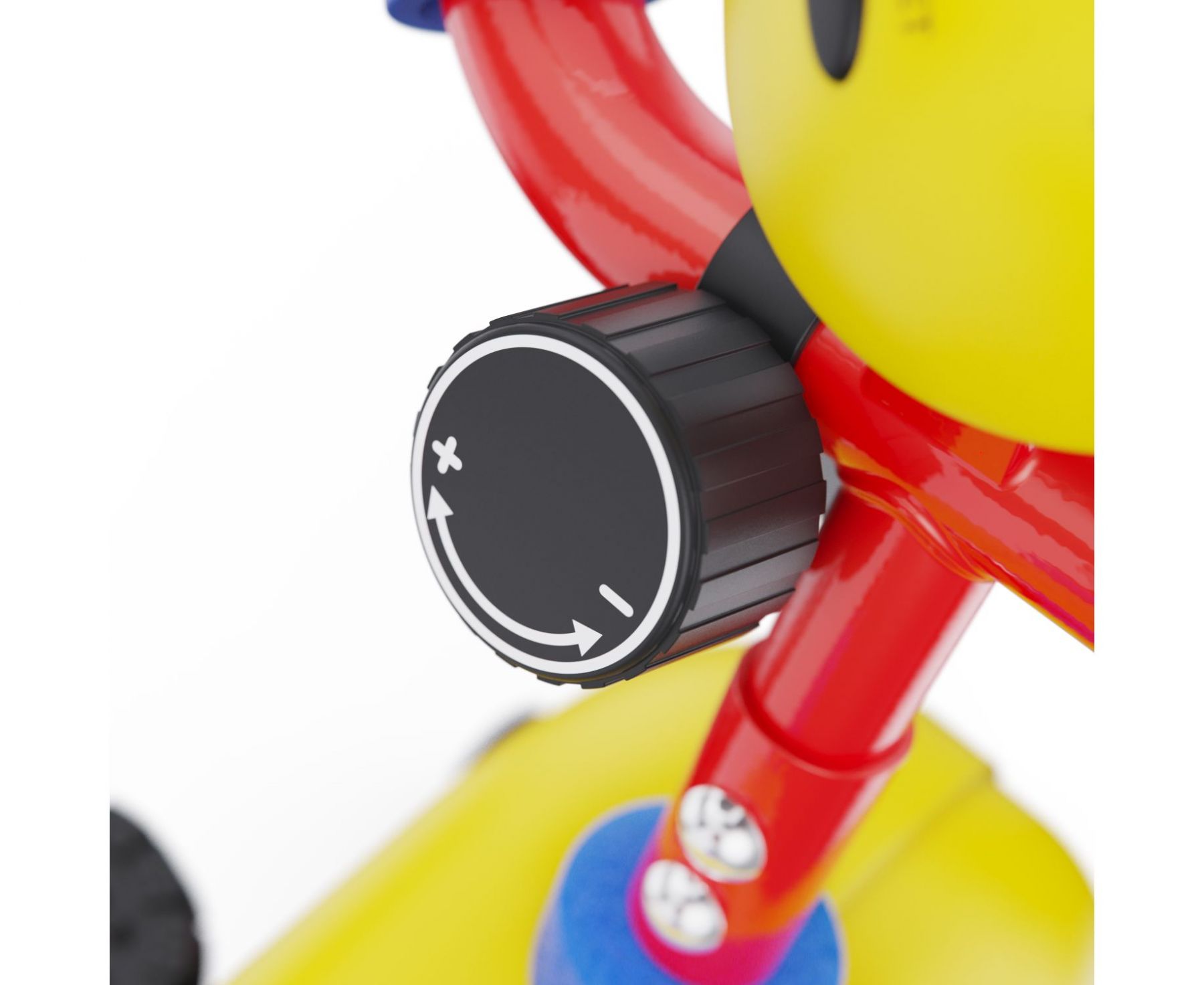 Сиденье регулируется по высоте. Удобная ручка на стойке позволяет изменять нагрузку.