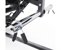 Максимальная нагрузка на тренажер составляет 400 кг. Прочный профиль рамы (50 х 70 х 2 мм и 50 х 50 х 1,8 мм) обеспечивает устойчивость даже при интенсивных занятиях. Посадочные диаметры держателей — 28–31 мм и 51 мм, под стандартные и олимпийские диски.