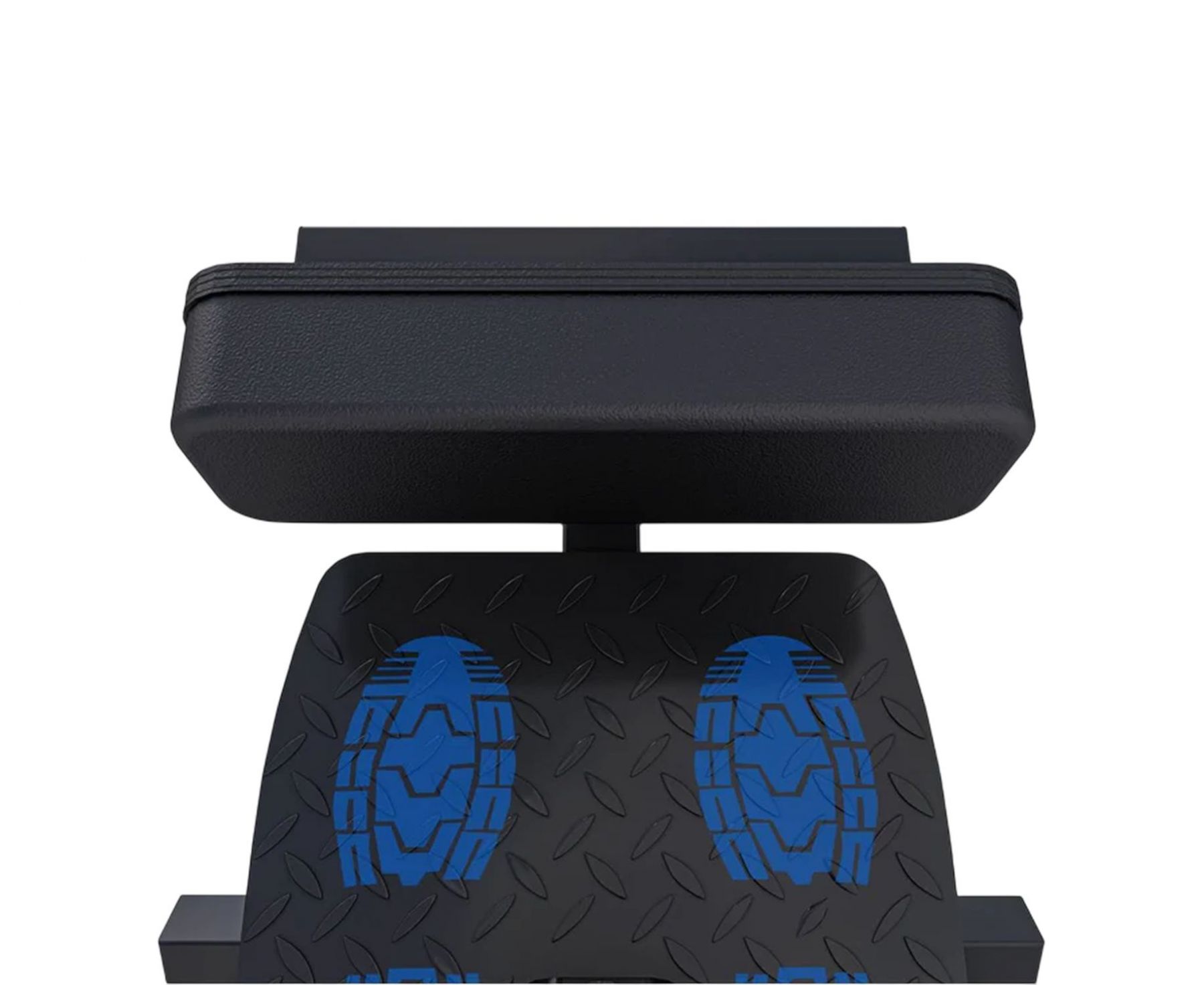 Максимальная нагрузка на тренажер — до 180 кг. Каркас тренажёра изготовлен из прочной стальной рамы с профилем 50 х 100 х 2 мм, обеспечивающей устойчивость и долговечность. Прорезиненные широкие опорные ножки предотвращают скольжение и защищают напольное покрытие, гарантируя безопасность во время тренировки.