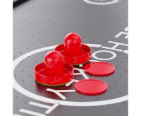 Встроенный вентилятор на 220В создает воздушную подушку, по которой шайба скользит практически без трения — именно так достигается эффект настоящего аэрохоккея. Электронный счетчик ведет учет забитых шайб, избавляя игроков от споров и добавляя соревнованию профессиональный дух. Размер стола — 135,5 х 67,6 х 81 см — позволяет разместить его даже в небольшой квартире, а прочные опорные ножки обеспечивают устойчивость во время динамичной игры.