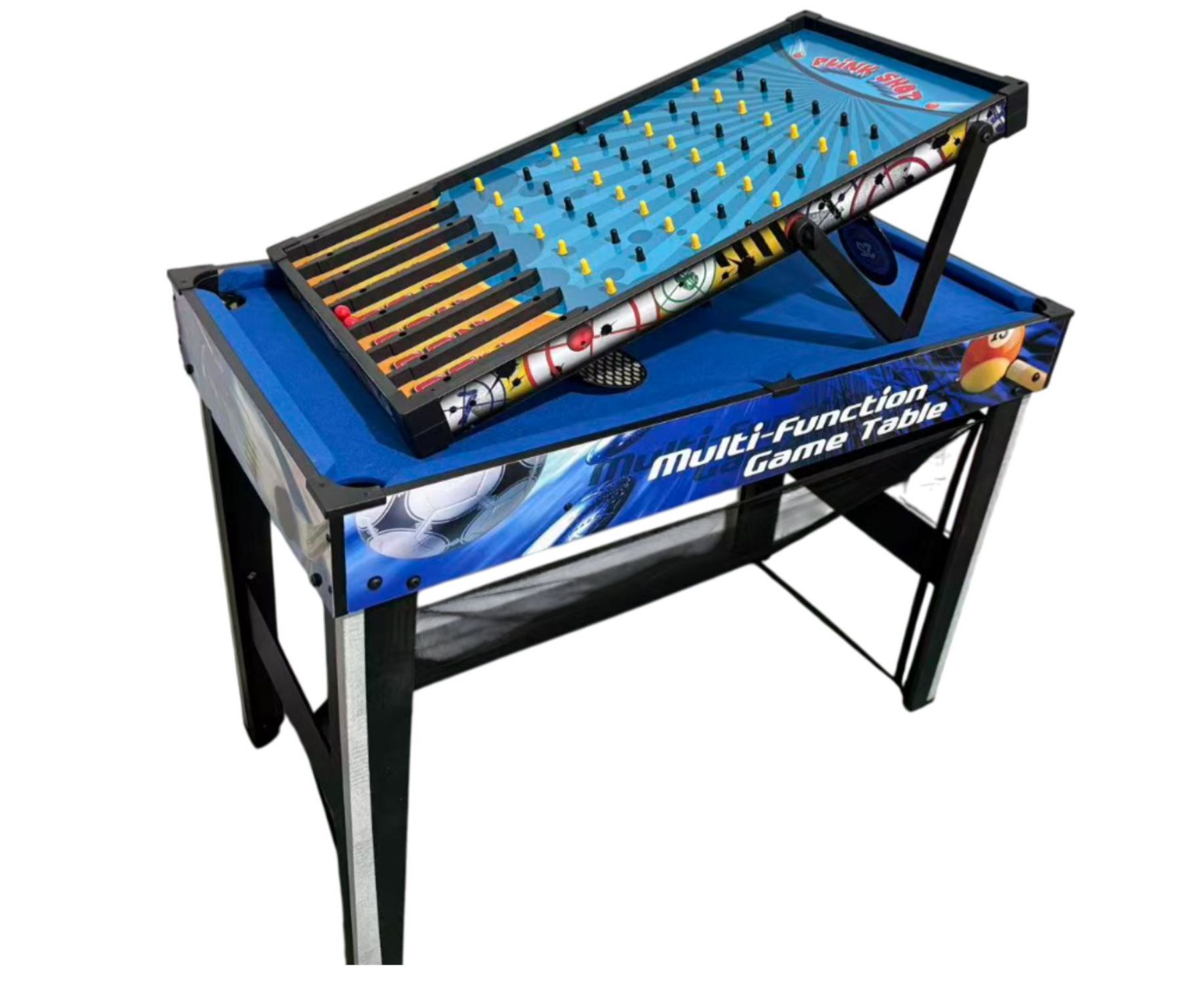 Игровой стол-трансформер DFC UY10185BL — универсальное и компактное решение для домашних игр и активного досуга. Он сочетает несколько популярных развлечений, позволяя разнообразить отдых и проводить время всей семьёй.
