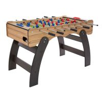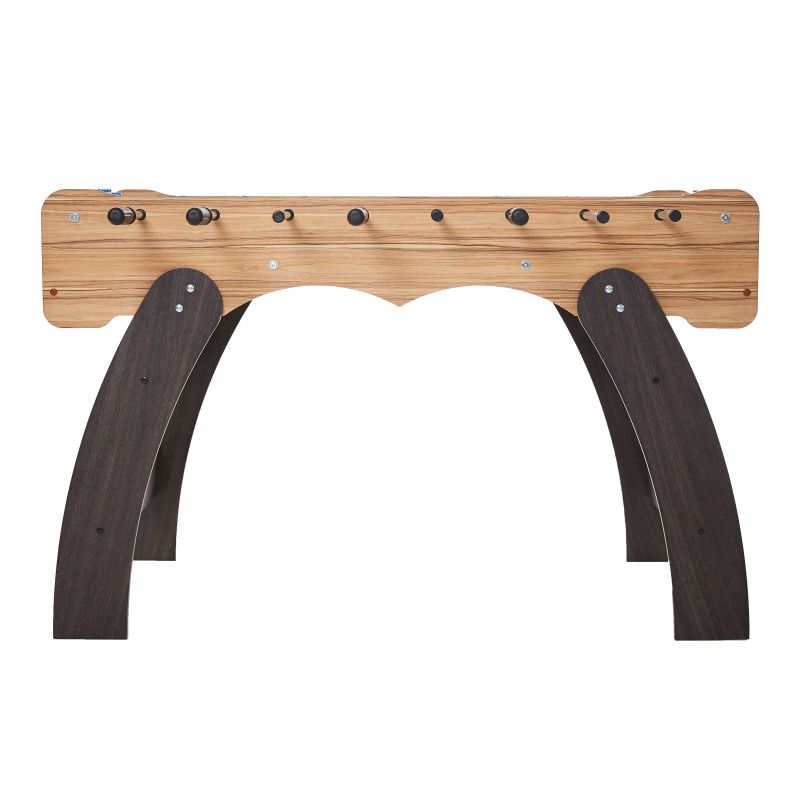 Имея размеры полноценного футбольного стола (поле 120х70 см.) кикер «Эсквайр Классик» очень мобильный: его легко перенести или подвинуть, ведь его вес – 45 кг. Его также можно быстро разобрать, отсоединив опоры, и перевезти на заднем сидении легкового автомобиля.Окончания игровых штанг защищены заглушками, чтобы предотвратить травмы при игре.Рукоятки выполнены из натурального дерева.