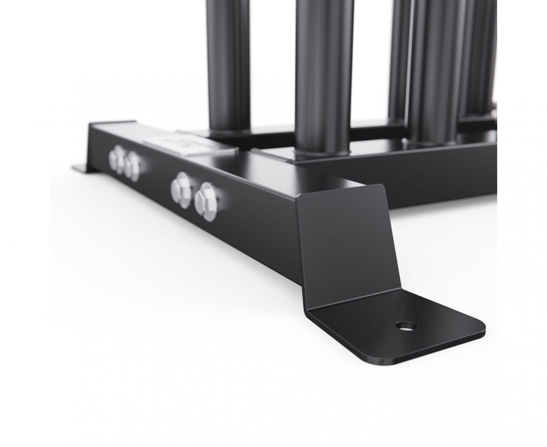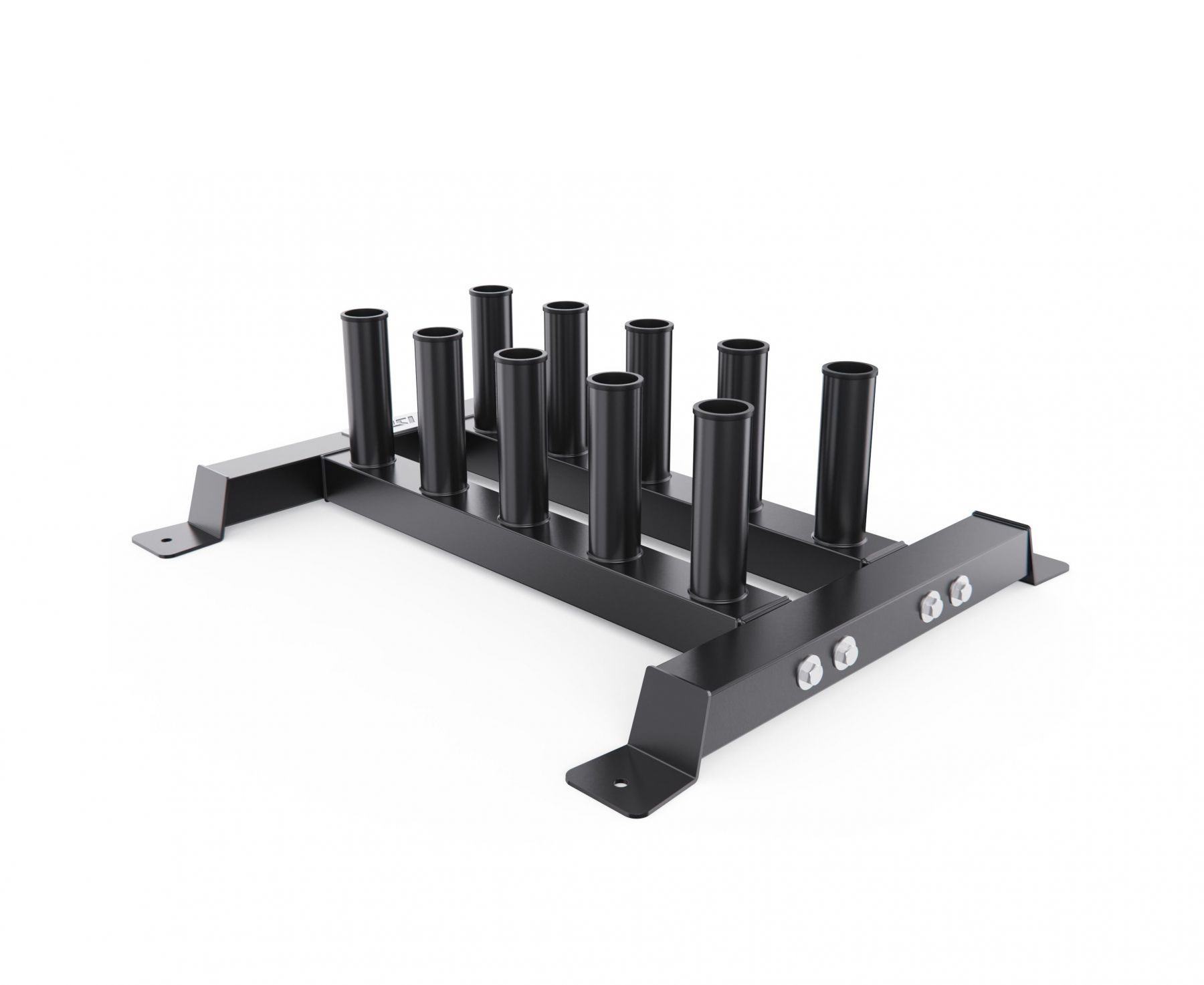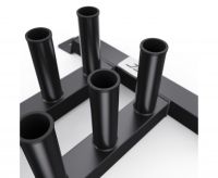 Диаметр посадочных труб составляет 50 мм, что соответствует стандарту олимпийских грифов. Стойка выдерживает максимальную нагрузку до 250 кг, обеспечивая безопасное хранение тяжелых спортивных снарядов.