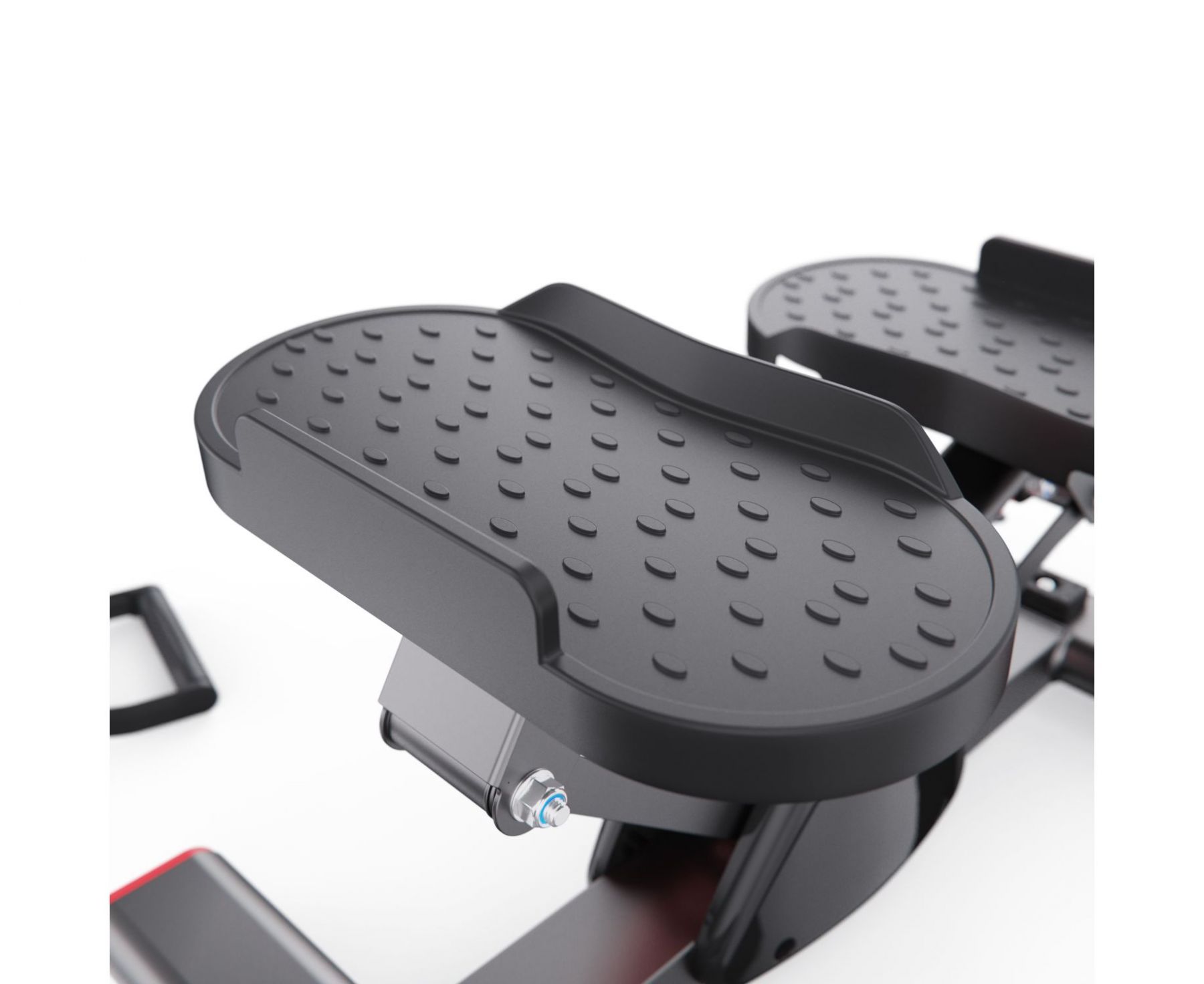 Рифленые педали размером 27 x 13 см обеспечивают надежное сцепление с обувью и предотвращают скольжение во время упражнений, обеспечивая безопасность. Регулируемая высота педалей от 16 до 28 см позволяет индивидуально настраивать степпер под необходимую нагрузку и уровень комфорта пользователя. Оптимальное расстояние между педалями 17 см обеспечивает естественное положение ног во время тренировок, что способствует правильной биомеханике движений. Это минимизирует нагрузку на суставы, позволяя избежать чрезмерного напряжения в стопах и голенях.