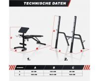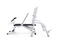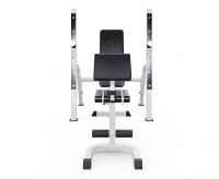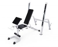 Максимально допустимая нагрузка на спортивную скамью составляет 250 кг. Нагрузка на парту может достигать 100 кг, а нагрузка на держатели под штангу составляет 100 кг.