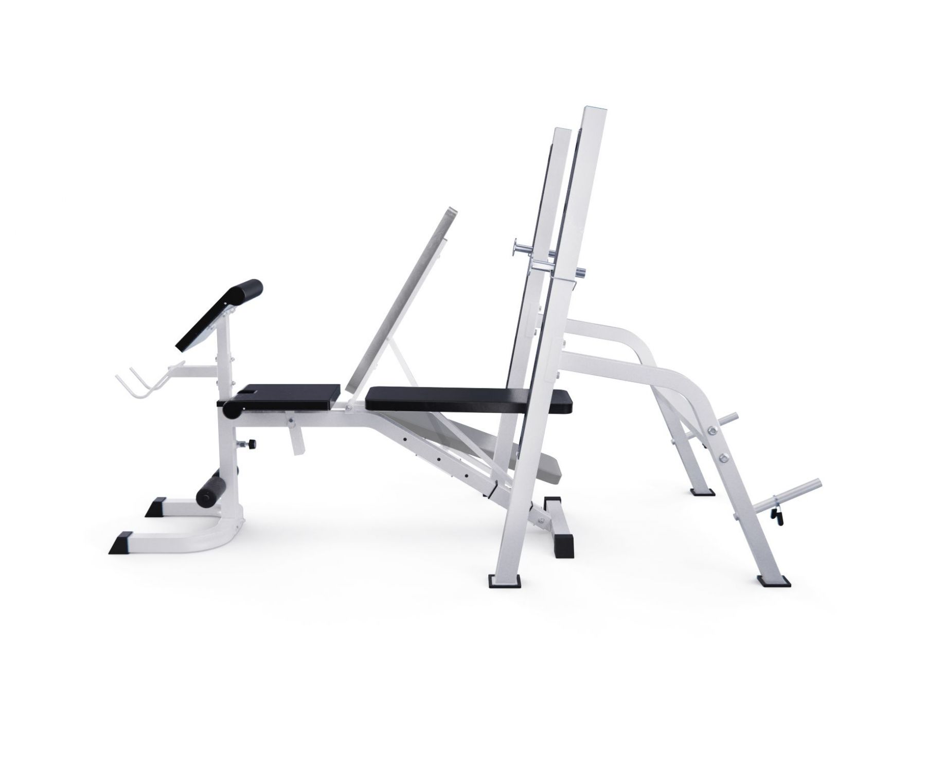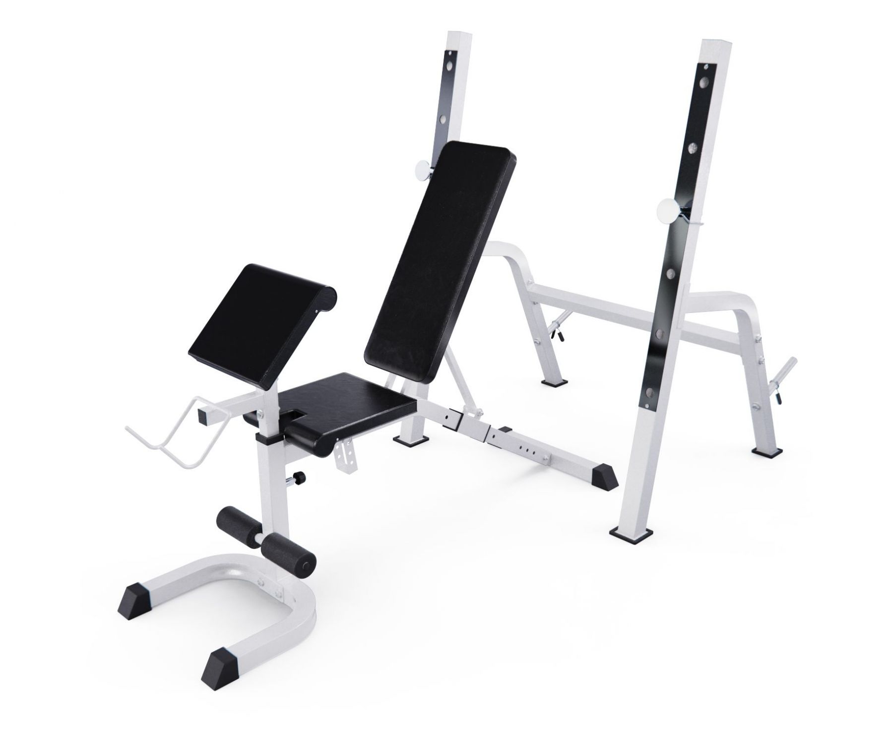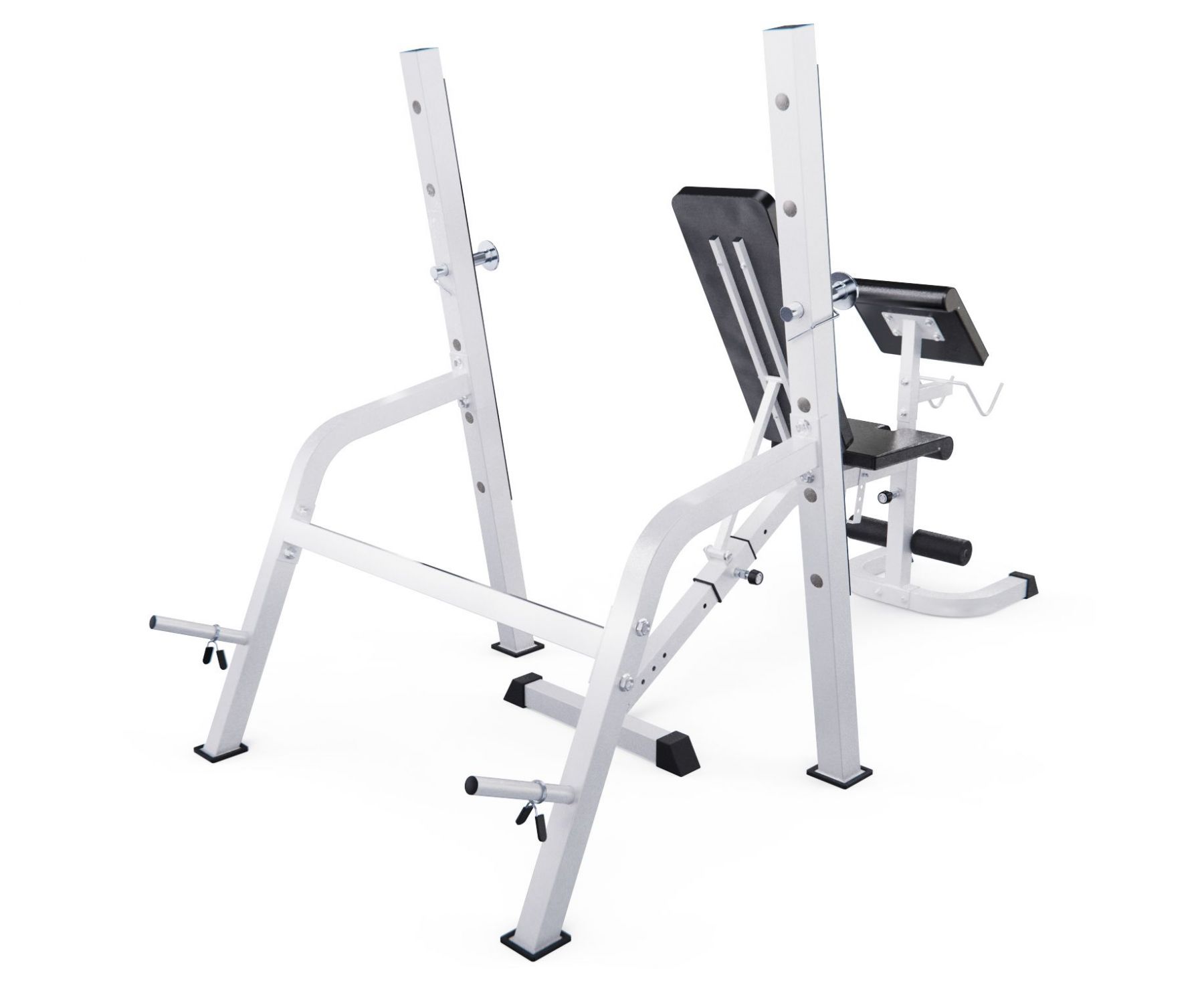 Высота держателей под штангу регулируется на 6 уровней от 46,5 до 138,5 см, что обеспечивает комфорт во время выполнения упражнений и позволяет настроить тренажер под себя.