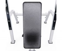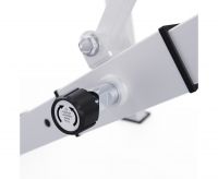 Скамья для жима имеет посадочное место для хранения дисков 25 мм. Длина посадочного места равна 20 см, а в комплекте идут 2 пружинных замка.