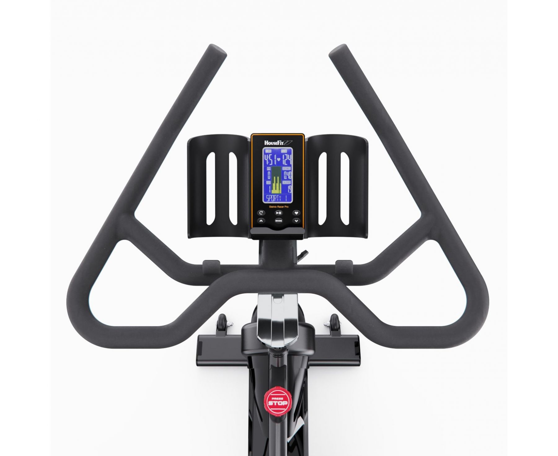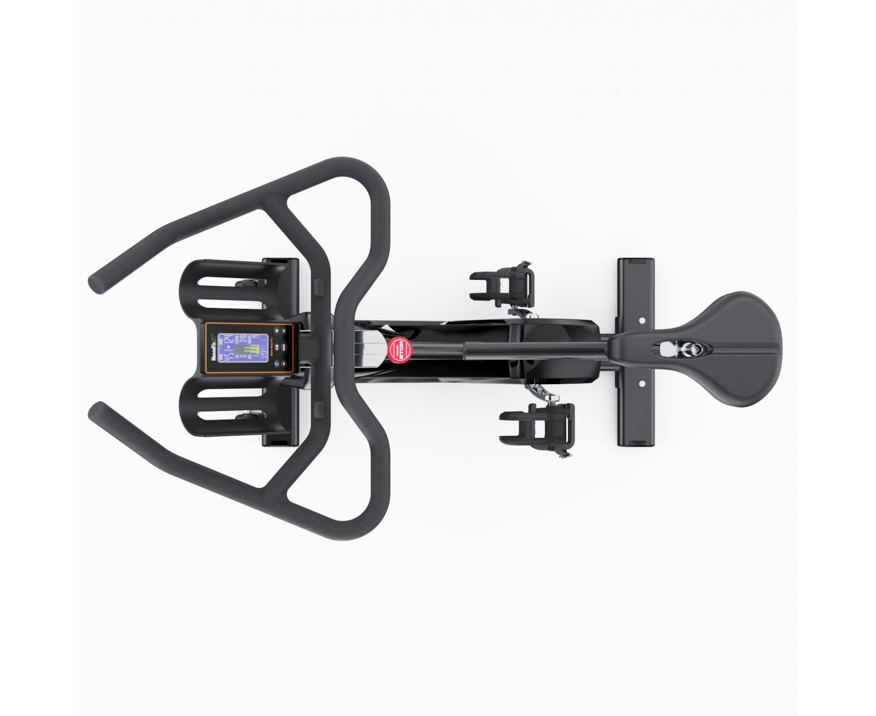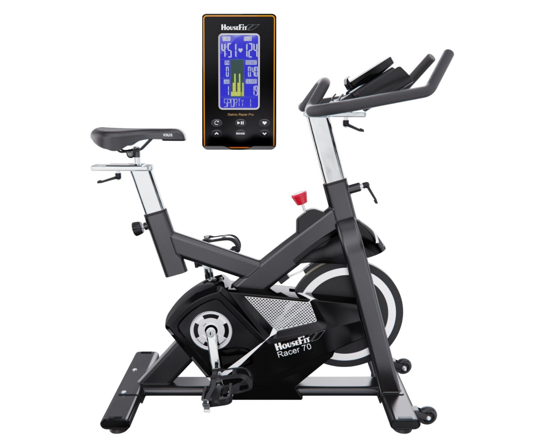 На LCD-дисплее с синей подсветкой отображаются все необходимые параметры: скорость, время, дистанция, сожжённые калории, мощность (ватт), обороты в минуту и пульс (для измерения пульса необходимо использовать нагрудный ремень, не входит в комплект). Консоль включает 15 тренировочных программ: ручной режим, начинающий (4 программы), продвинутый (4 программы), спортивный (4 программы), кардио и тренировку с постоянной мощностью. Поддержка Bluetooth позволяет подключить тренажер к нагрудному пульсометру.