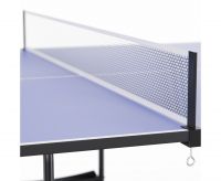 Столешница выполнена прочных металлических элементов с ножками диаметром 25 мм, что гарантирует устойчивость и безопасность в процессе игры. Такая конструкция выдерживает интенсивные нагрузки и подходит для регулярного использования. Толщина столешницы 15 мм, что обеспечивает хороший и предсказуемый отскок мяча. Синий цвет поверхности выглядит ярко и стильно, а защитный кант по периметру предохраняет края столешницы от повреждений и продлевает срок службы.