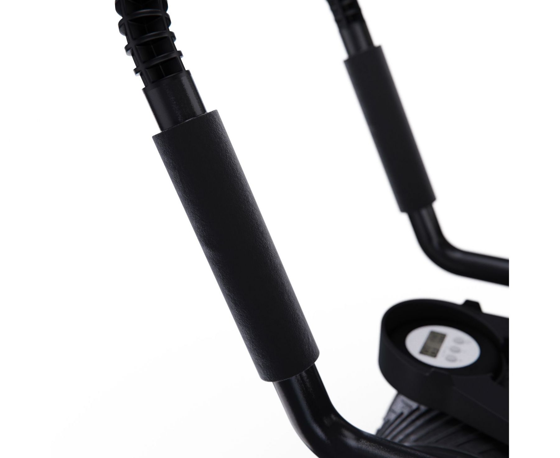 Монохромный LCD-дисплей диаметром 6,5 см отображает время тренировки. Дисплей работает от батарейки LR1130, не входит в комплект. Между подлокотниками располагается подставка под смартфон: разнообразьте свои тренировки просмотром фильма или подкаста.