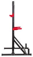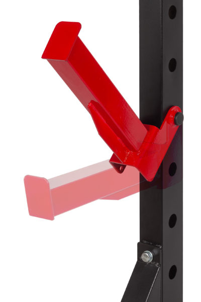 - Регулируемые страховочные упоры позволяют установить оптимальную высоту для жима и приседаний, минимизируя риск травм.