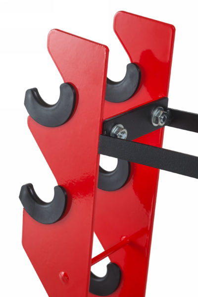 - Зубчатая система хранения – фиксирует гантели надёжно, предотвращая скатывание и повреждение пола.