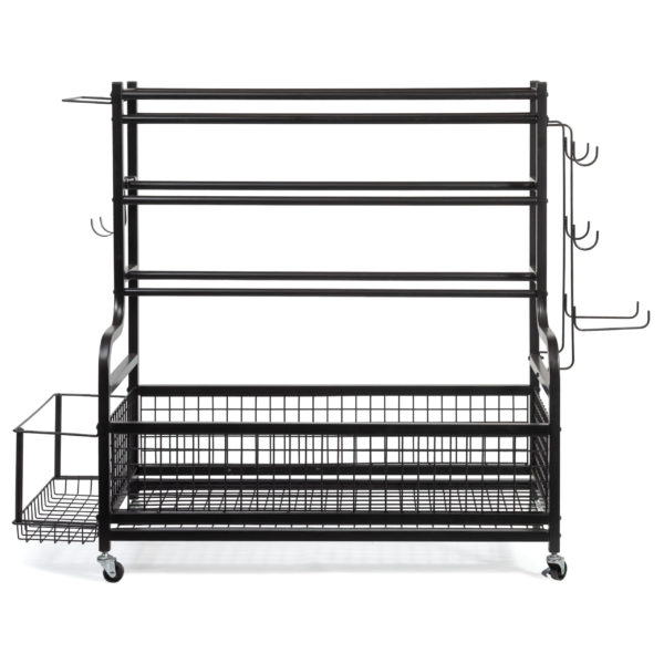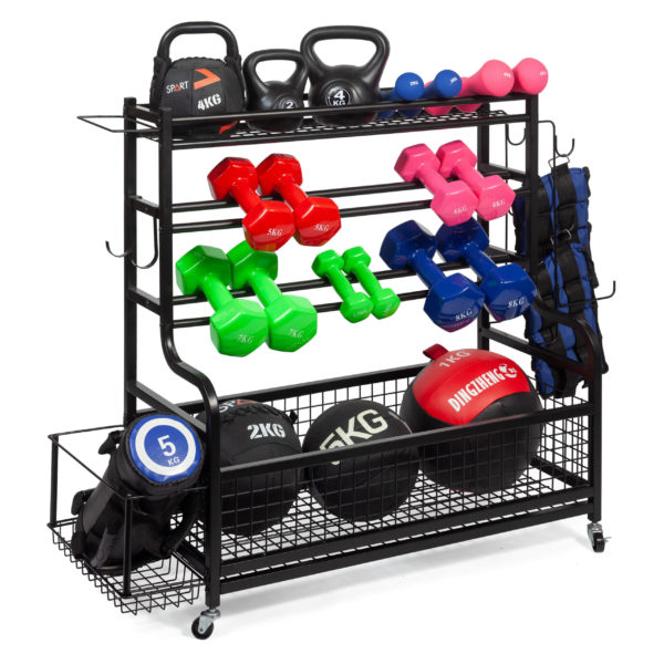 Прочная стальная конструкция – выдерживает нагрузку до 180 кг, обеспечивая безопасное хранение даже различного инвентаря (гантелей, гирь, медболов и др.).
