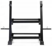 - Максимальная нагрузка – до 200 кг, что позволяет размещать гантели и диски разного веса.
