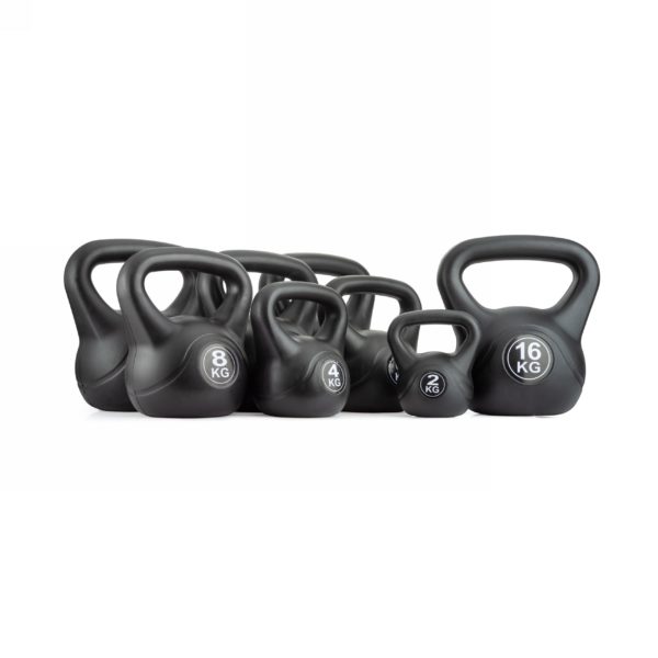 - Прочная конструкция – гиря изготовлена из пластика, песка и цемента, что гарантирует долговечность и устойчивость к ударам.
