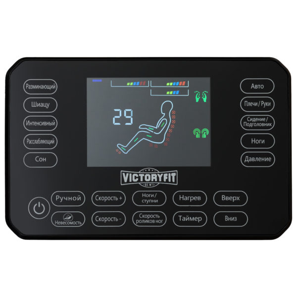 Массажное кресло VictoryFit VF-M18 – это инновационная система для глубокого восстановления мышц, снятия напряжения и улучшения кровообращения. Благодаря группам массажных роликов, воздушным подушкам и многофункциональным программам, кресло обеспечивает полноценный массаж всех зон тела – от шеи до стоп.