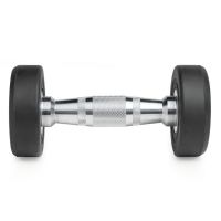 - Стильный дизайн – сочетание черного и хромированного покрытия придает гантели современный и эстетичный вид.