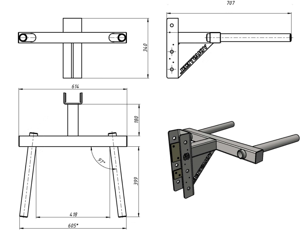 Брусья совместимы со стойками функциональных рам, которые имеют профиль 60х80мм. Также профиль должен быть перфорирован отверстиями диаметром 17мм под страховочный штырь. Мы не можем гарантировать совместимость наших навесных элементов с конструкциями других производителей, но отталкиваясь от параметров совместимости вы можете понять подойдут ли вам данные навесные элементы.