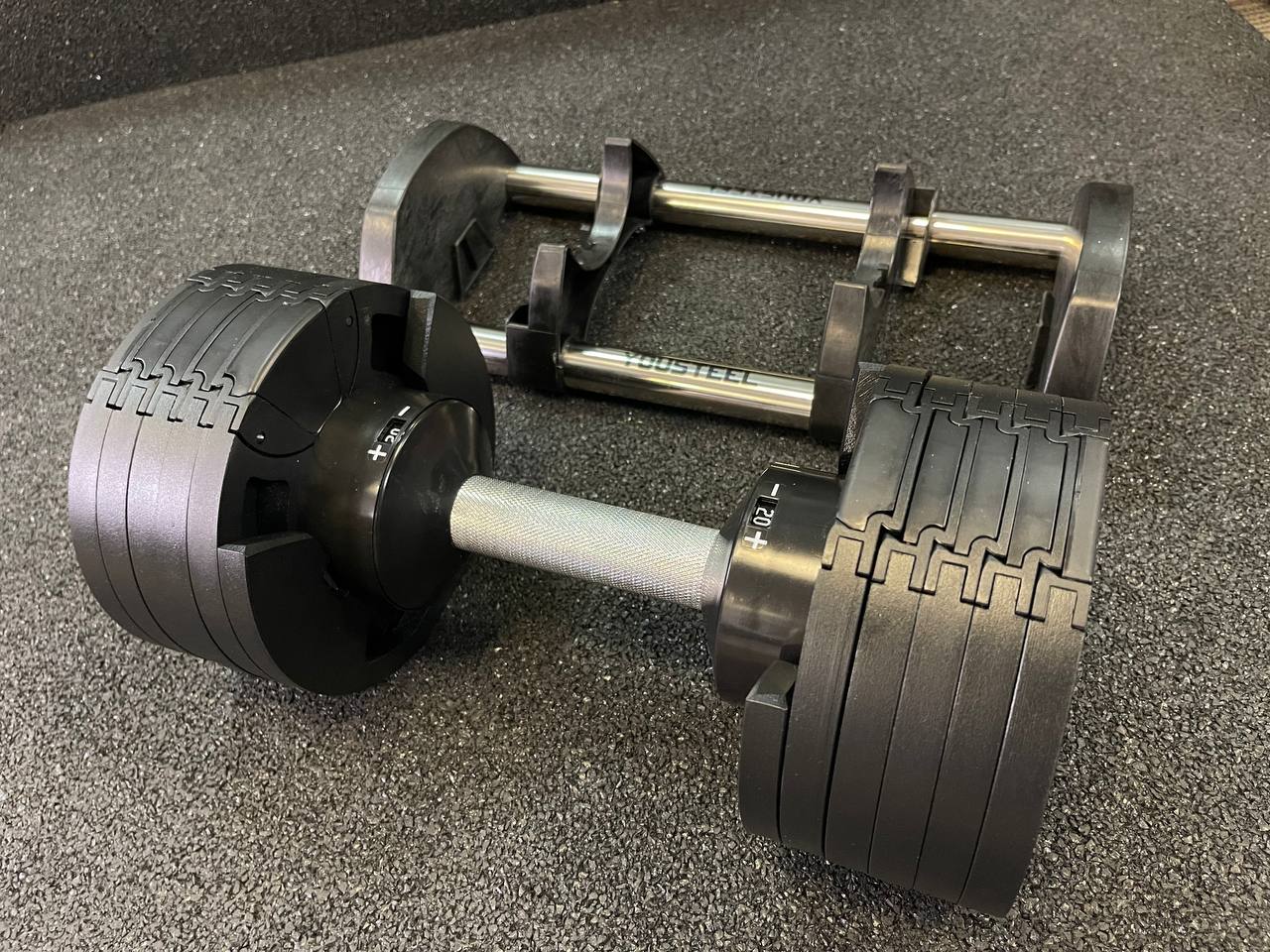 Просто поверните рукоять гантели и получите нужный вам вес! Представляем вам гантель с регулируемым весом от 2 до 20кг, с шагом 2кг и платформой для хранения в комплекте. Идеальное решение для тех, кто любит тренироваться дома или в небольших залах-студиях.