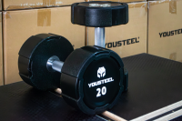 Данный тип гантелей повсеместно любим фитнес залами за свою надёжность и неприхотливость в эксплуатации. Цена указана за 1шт. Полиуретановые гантели отлично подходят для занятий фитнесом и устойчивы к воздействую воды и пота. Эти гантели не имеют запаха и могут выдержать интенсивное использование, что делает их идеальным инструментом для коммерческих условий. Форма гантели препятствует переворачиванию изделия во время опускания на пол.
