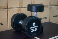 Данный тип гантелей повсеместно любим фитнес залами за свою надёжность и неприхотливость в эксплуатации. Цена указана за 1шт. Полиуретановые гантели отлично подходят для занятий фитнесом и устойчивы к воздействую воды и пота. Эти гантели не имеют запаха и могут выдержать интенсивное использование, что делает их идеальным инструментом для коммерческих условий. Форма гантели препятствует переворачиванию изделия во время опускания на пол.