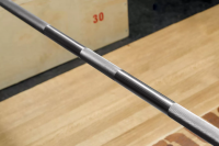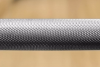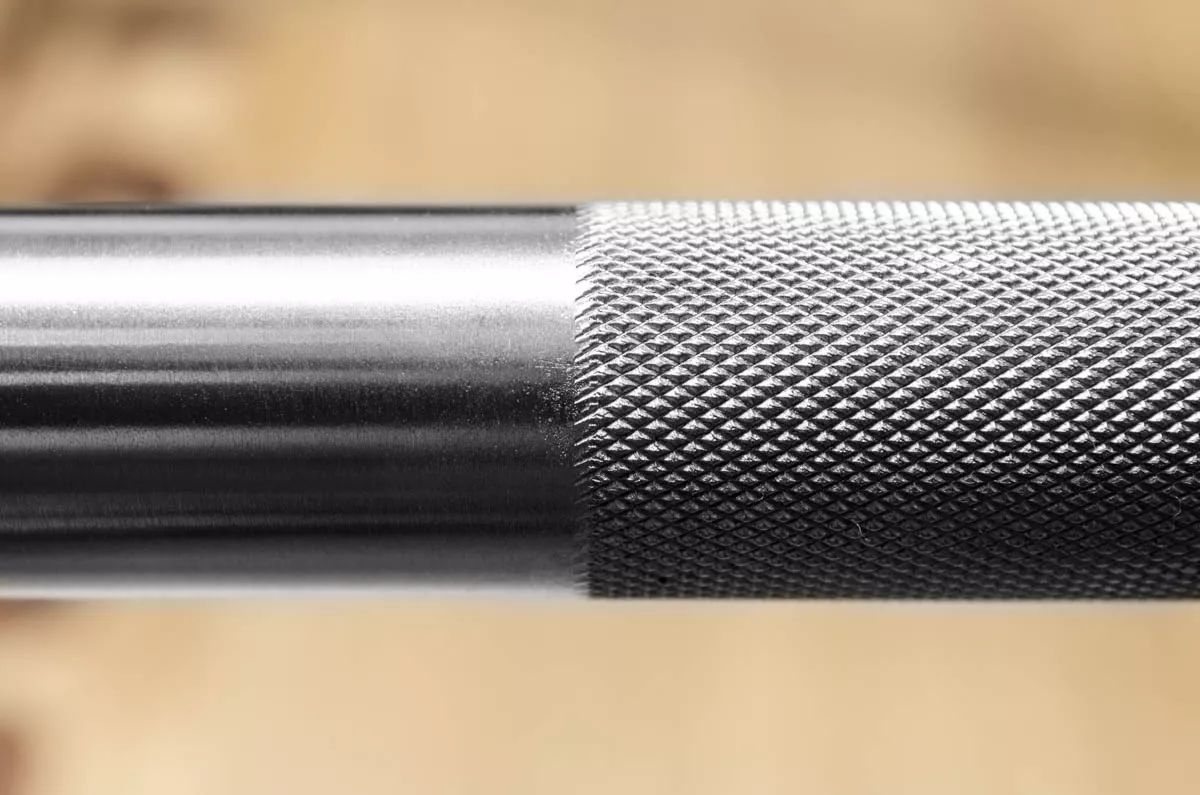 Глубокая насечка на грифе гарантирует надёжное сцепление с ладонями атлета, а игольчатые подшипники обеспечивают идеальное вращение втулок под нагрузкой. Рукоять грифа покрыта хромом и имеет метки IWF (международной федерации тяжёлой атлетики), а на втулках — насечка, которая предотвращает сползание дисков при падении снаряда.