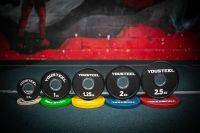 Малые тренировочные диски не предназначены для бросков. Сбрасывание штанги только с малыми тренировочными дисками деформирует как сами диски, так и грифы - это может привести к поломке инвентаря.