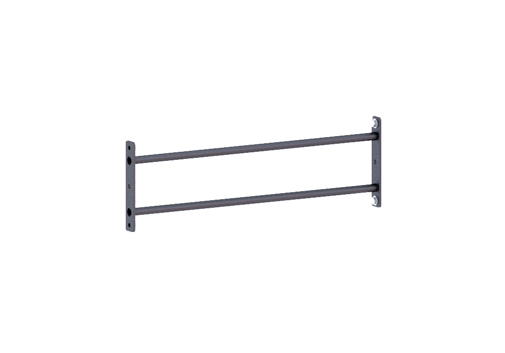 Двойная перекладина 1050мм, закрывает несколько задач. Первая, это задать жесткость в верхнем поясе функциональных рам, это важно, если вы хотите добиться уменьшения парусности конструкции. Вторая задача, это возможность монтировать перекладину на стеллаж, тем самым она становится полкой для хранения медицинских мячей.