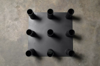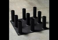 Напольная подставка для вертикального хранения грифов отличный вариант для клубов, где нет возможности крепить кронштейны к стенам. С этой подставкой вы сможете компактно разместить 9 грифов и они займут минимум места. Подставка для грифов выполнена из листа металла, на который наварены трубы диаметром 60мм для удержания грифов. Подставка имеет возможность крепления в пол за счет наличия отверстий в платформе основания.