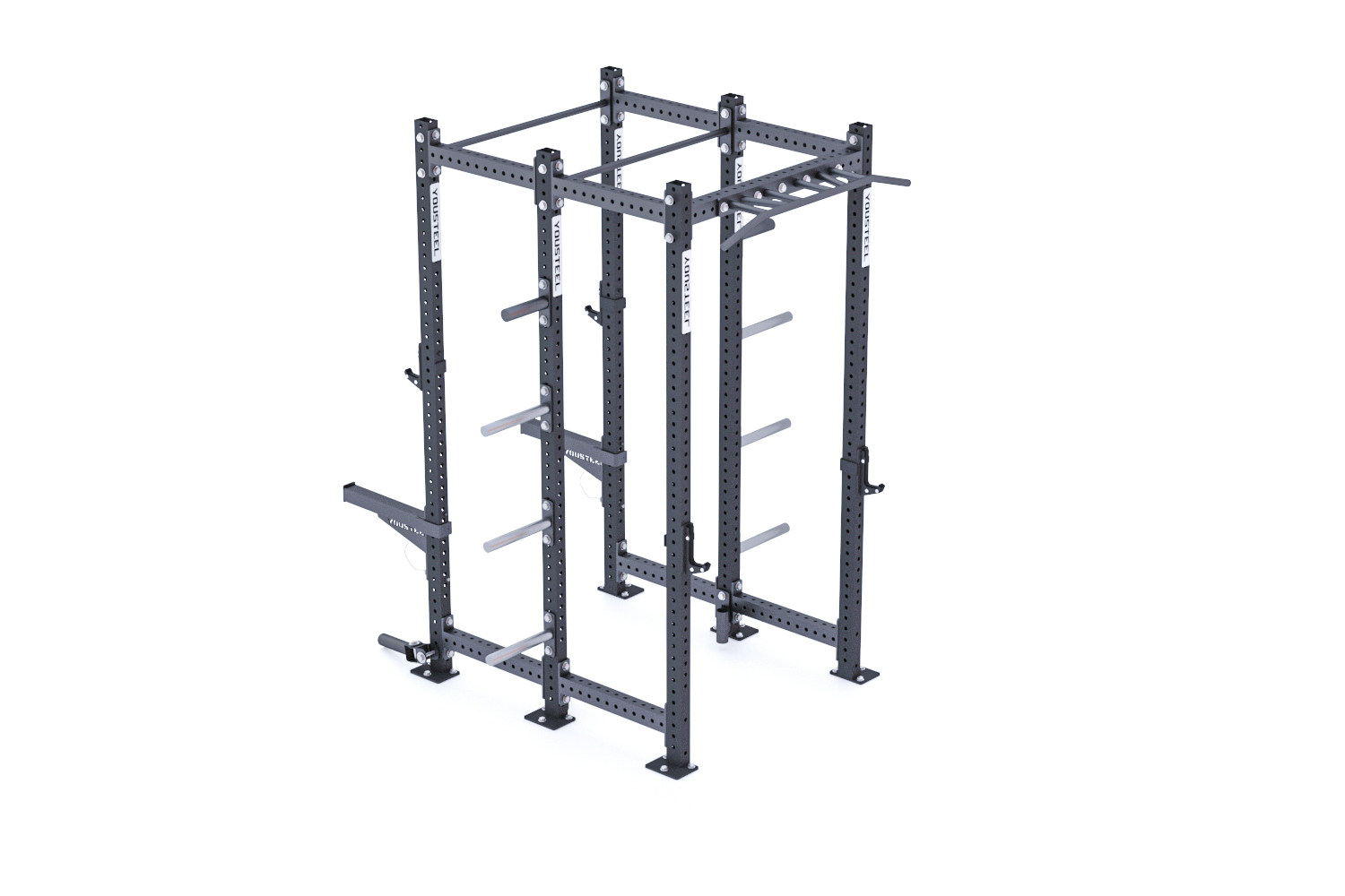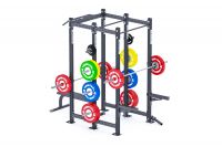 Силовая рама DOUBLE RACK PLATE спроектирована для домашних/гаражных залов и залов малой площади. Данная конструкция позволяет работать со штангой одновременно ДВУМ атлетам. Цель ее разработки - сделать полноценное место для силового и функционального тренинга на площади до 50м.кв. Габаритные размеры: Высота: 2465мм. Глубина: 1210мм. Длина: 1440мм. Рама собирается на болтовые соединениями, при необходимости вы сможете ее разобрать и собрать в новом месте, а модульность конструкции позволит вам в будущем добавить отсеки. Грифы, диски и скамья не входят в комплект конструкции и приобретаются отдельно.