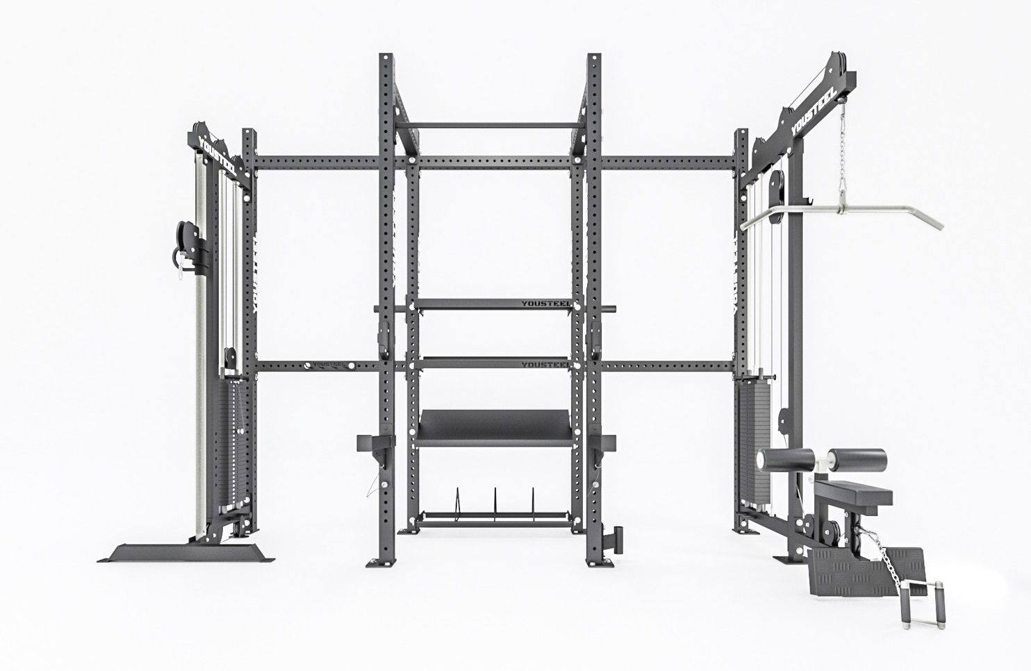Силовая станция кроссовер-тяга спроектирована для домашних/гаражных залов и залов малой площади. Цель ее разработки - сделать полноценное место для силового и функционального тренинга на площади до 50м.кв. Габаритные размеры: Высота: 2465мм. Глубина: 1720мм. Длина: 4030мм. Рама собирается на болтовые соединениями, при необходимости вы сможете ее разобрать и собрать в новом месте, а модульность конструкции позволит вам в будущем добавить отсеки. Гриф, диски, гири, гантели не входят в комплект конструкции и приобретаются отдельно.