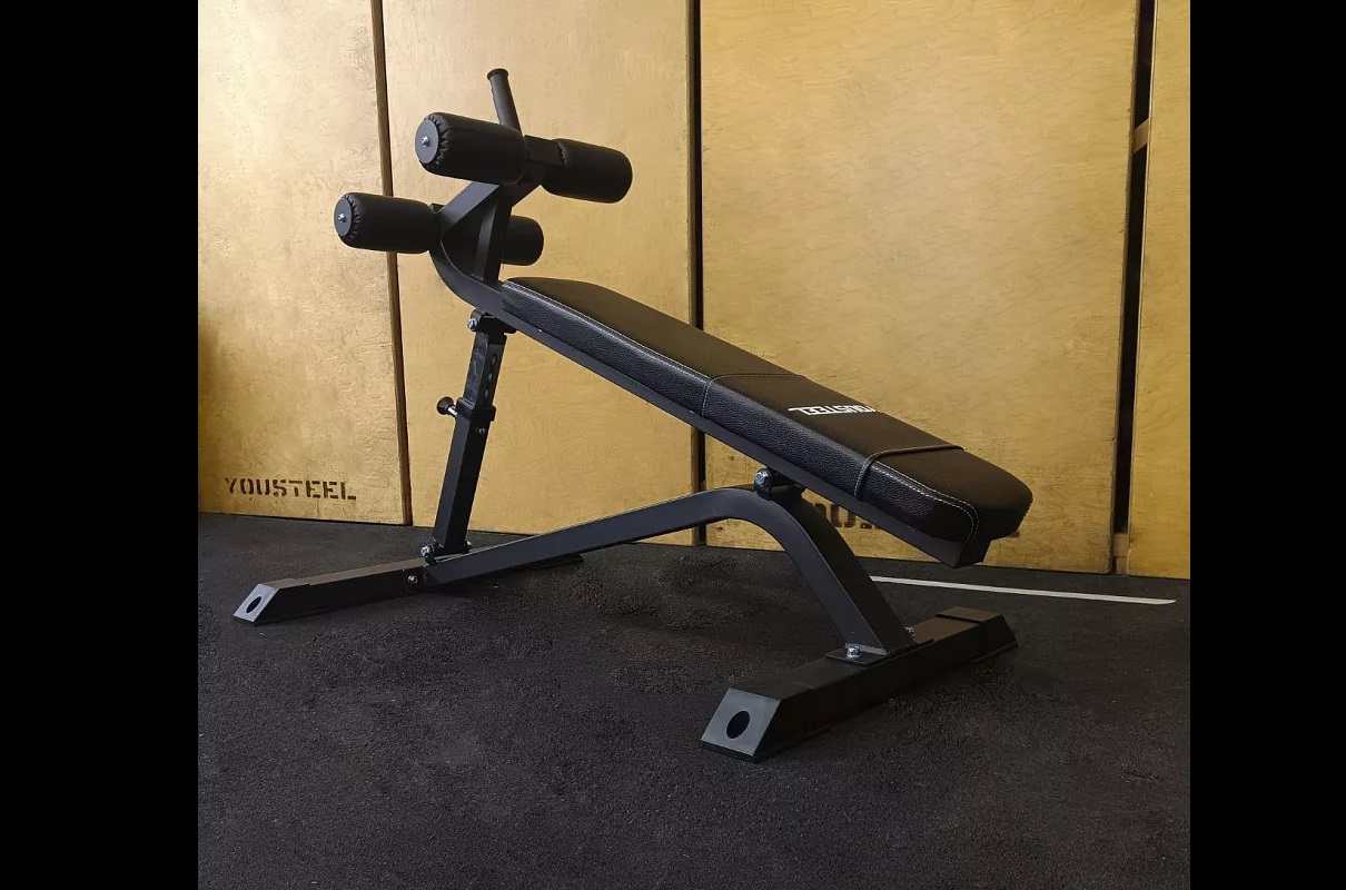 Регулируемая скамья для пресса предназначена для тренировки прямых и косых мышц живота с возможностью выбора оптимального угла наклона. Скамья отлично подойдёт как для коммерческого использования, так и домашнего. Валики скамьи позволят надежно зафиксировать ноги во время выполнения упражнения, а рукоять даст возможность удобно перемещать тренажер.