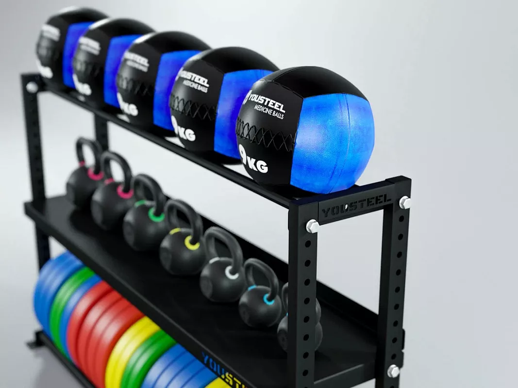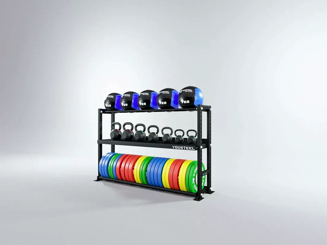 Модульные стеллажи YOUSTEEL – универсальное и простое решение по организации эффективного хранения вашего оборудования в зале. Они отлично вписываются в интерьер любого спортивного зала. Стеллаж YOUSTEEL изготавливаются из стали толщиной 3 мм, поверхность покрыта порошковой краской.