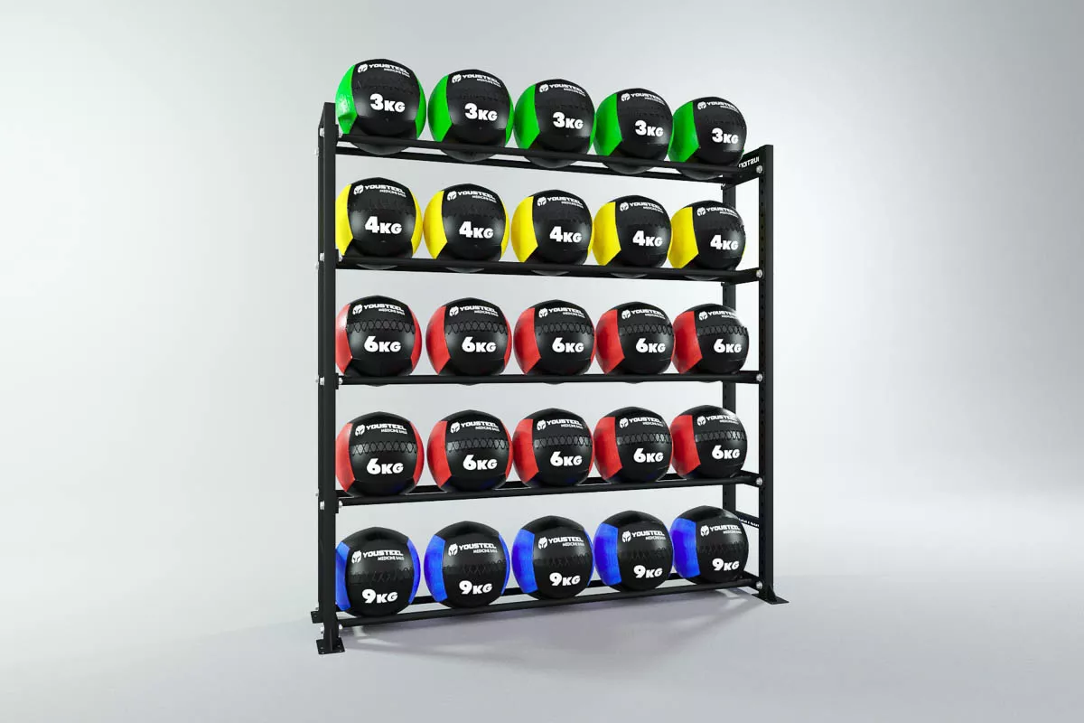 Модульные стеллажи YOUSTEEL – универсальное и простое решение по организации эффективного хранения вашего оборудования в зале. Они отлично вписываются в интерьер любого спортивного зала. Стеллаж YOUSTEEL изготавливаются из стали толщиной 3 мм, поверхность покрыта порошковой краской.